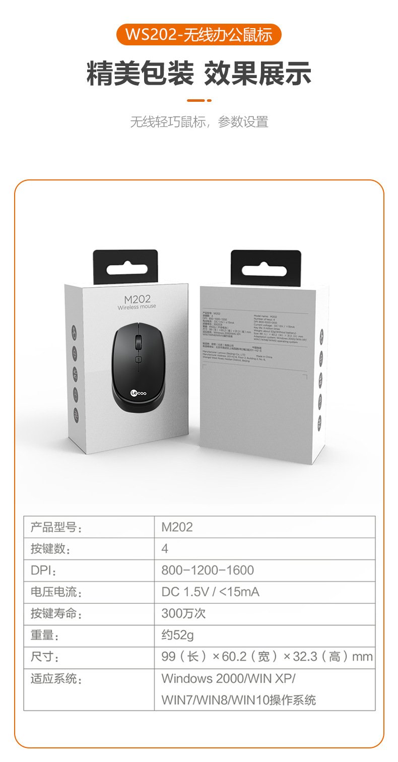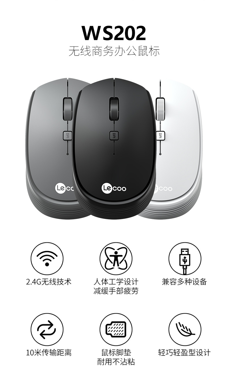 Laiku WS202 무선 마우스 2.4G 비즈니스 사무실 휴대용 노트북 데스크탑 컴퓨터 USB 홈 마우스