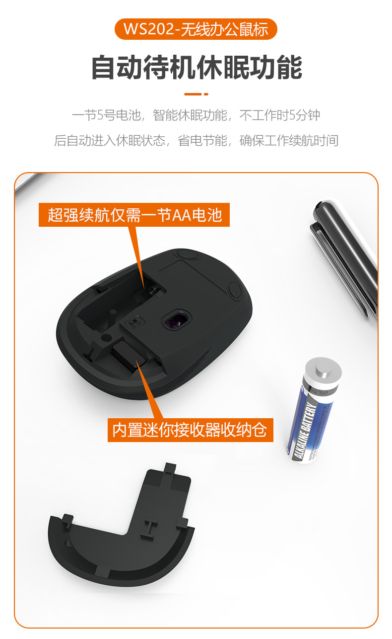 Laiku WS202 무선 마우스 2.4G 비즈니스 사무실 휴대용 노트북 데스크탑 컴퓨터 USB 홈 마우스스토어 가기