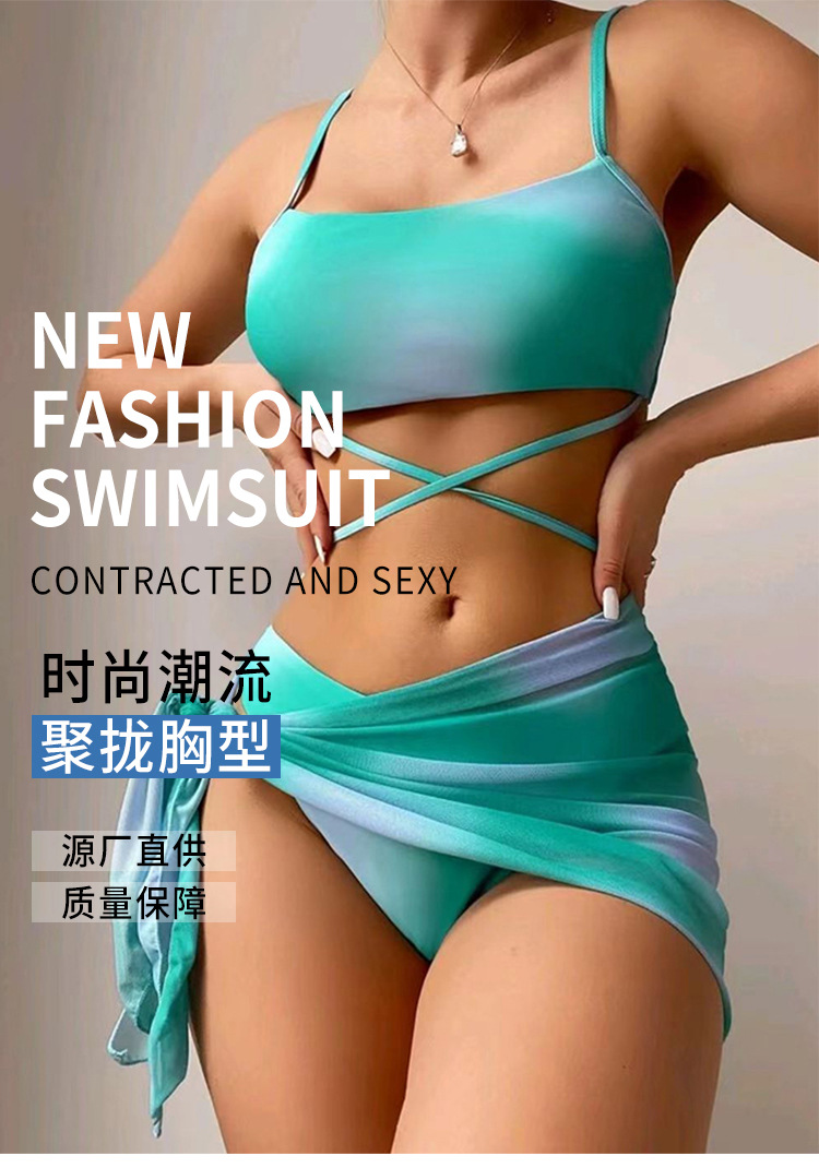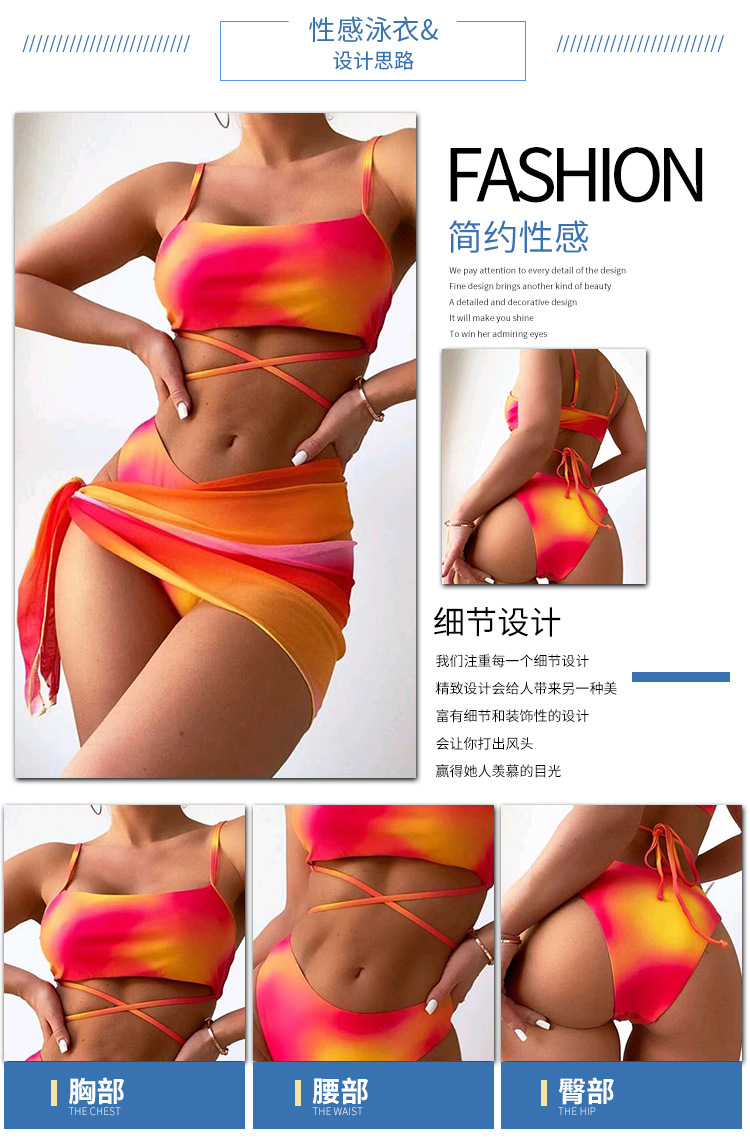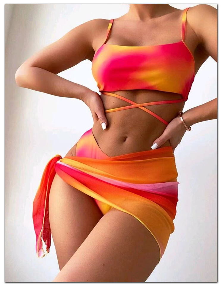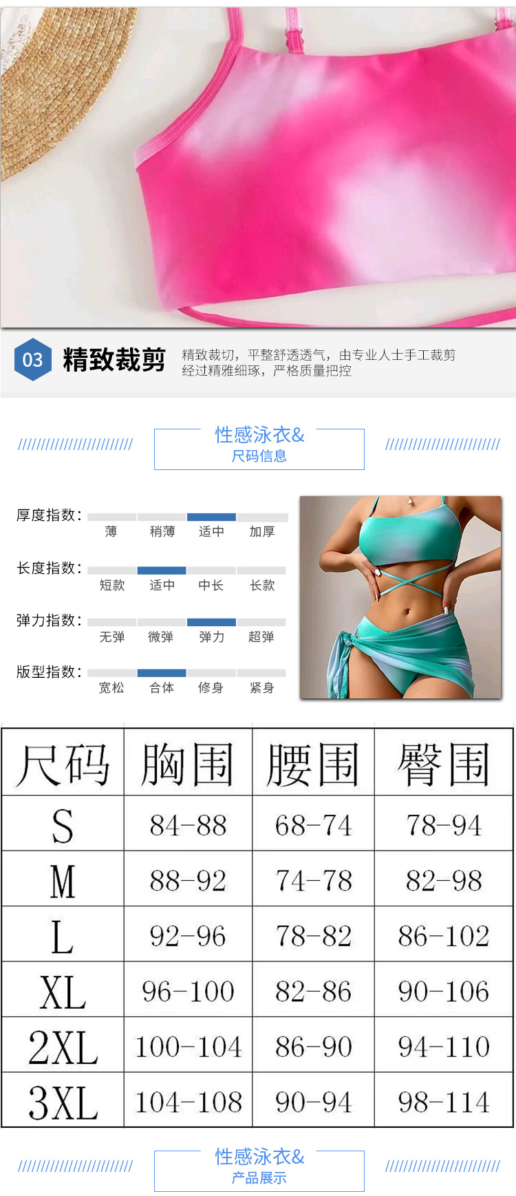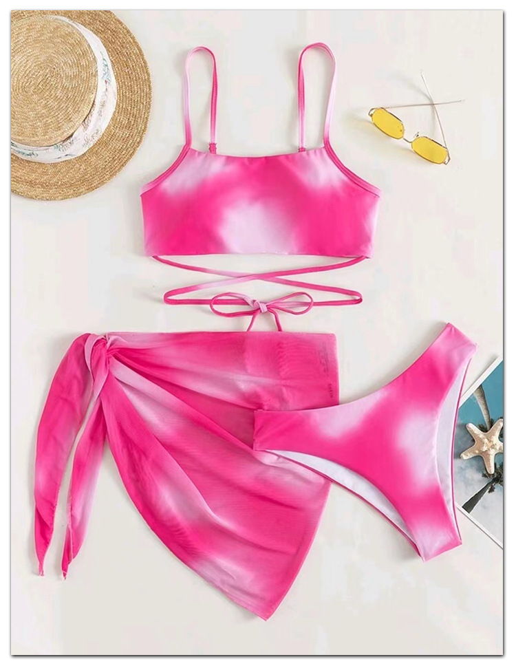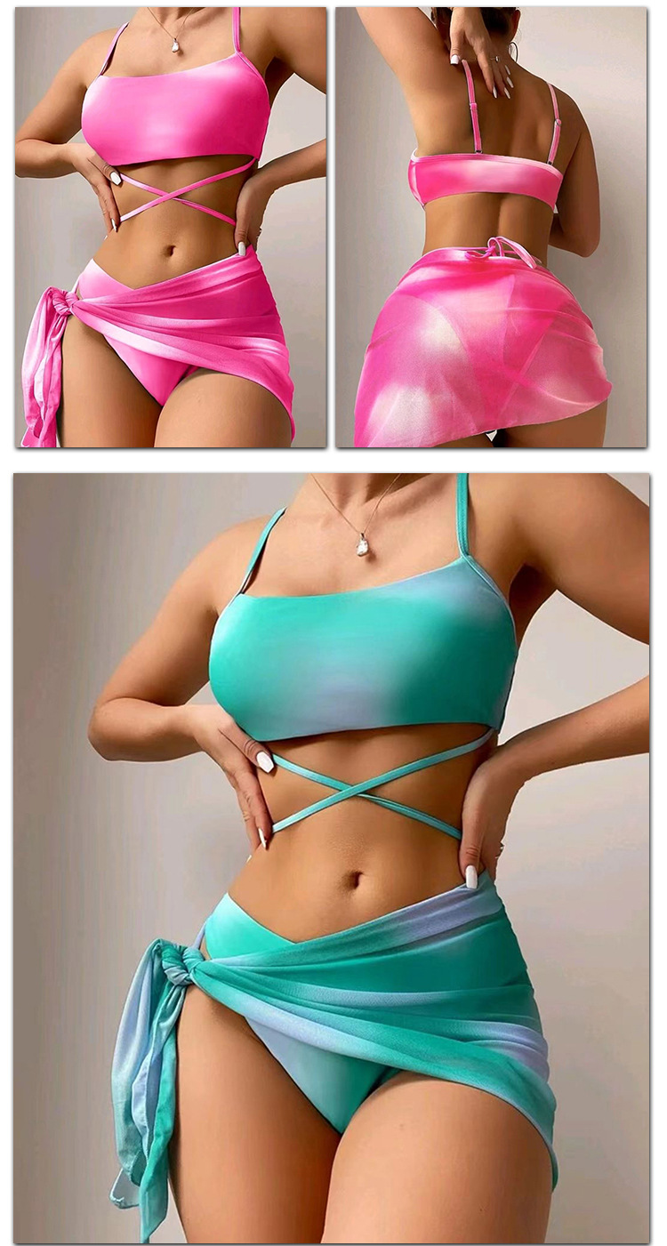 2024 유럽과 미국 국경 간 타이 염색 3 피스 비키니 수영복 메쉬 스커트 스플릿 비키니 아마존 알리 익스프레스