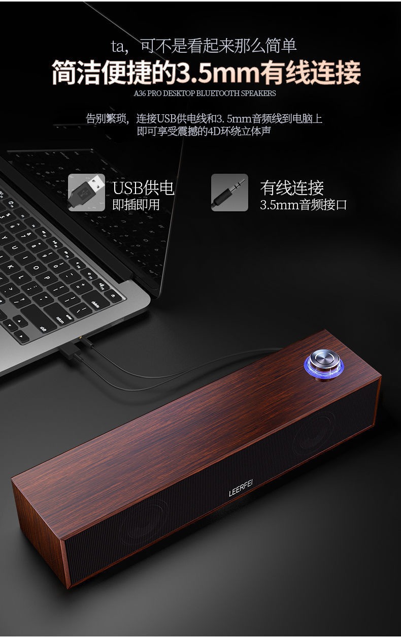 크로스-보더 E-350MB 유선 데스크탑 나무 긴 블루투스 스피커 컴퓨터 홈 다시 벽 서브 우퍼 작은 소리