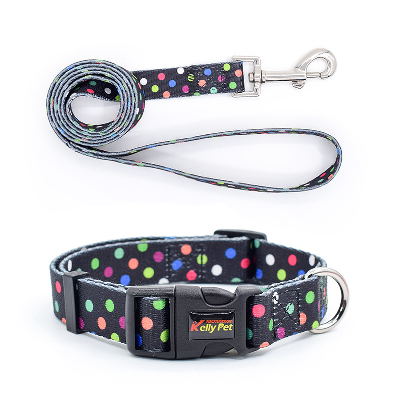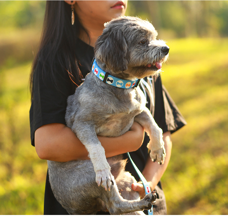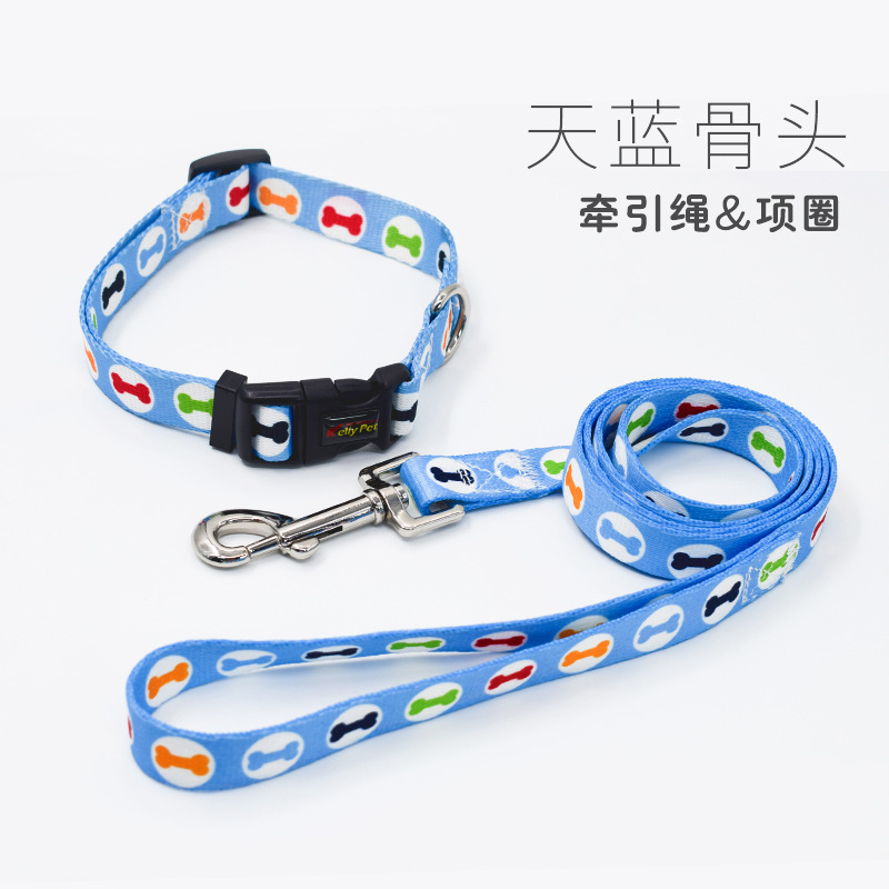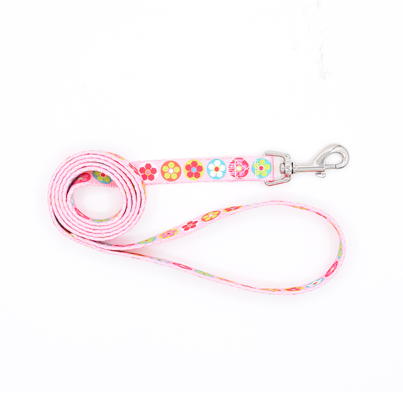 2025 새로운 폴리 에스터 인쇄 개 가죽 끈 세트 중소형 테디 포메라니안 애완 동물 목걸이 목걸이 도매