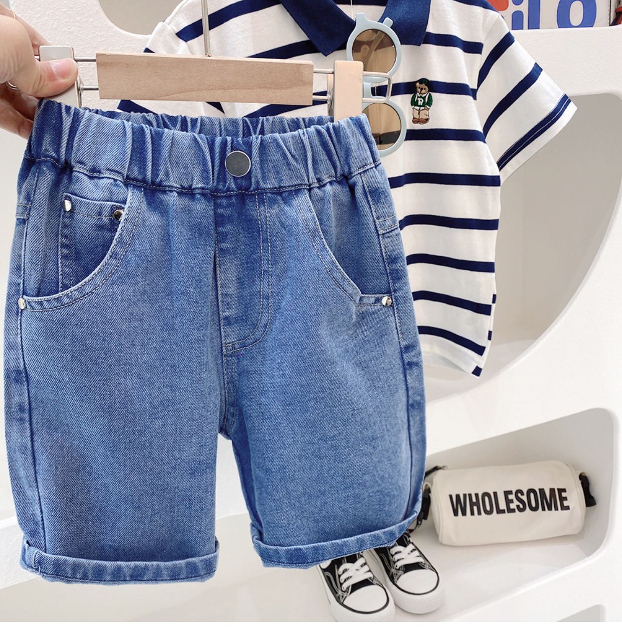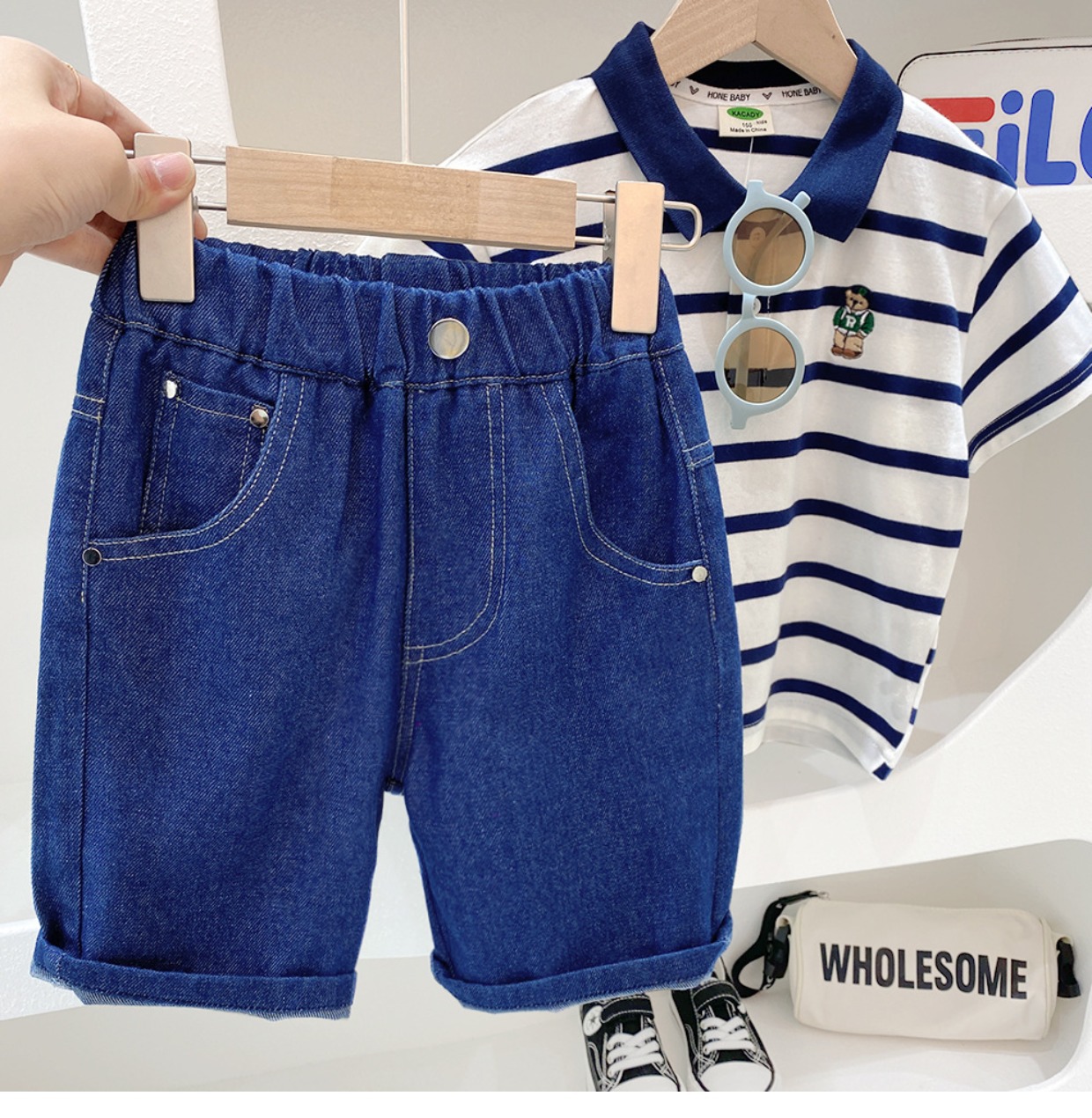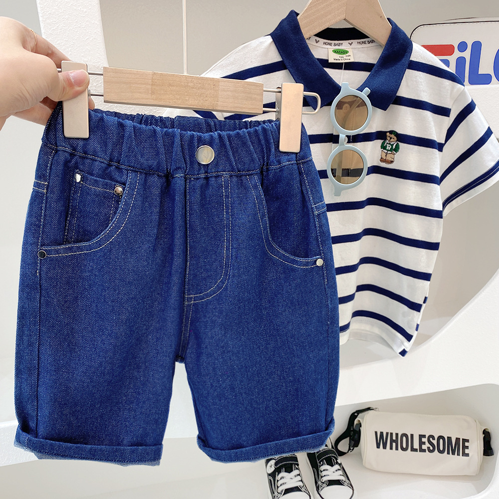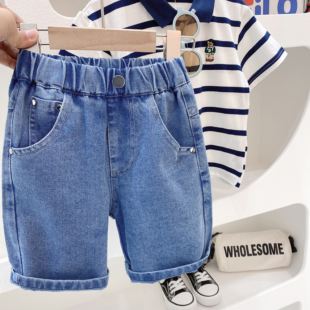 남아 데님 반바지 2023 여름 얇은 아기 소프트 5 길이 바지 큰 아이와 학생 겉옷 미디엄 팬츠