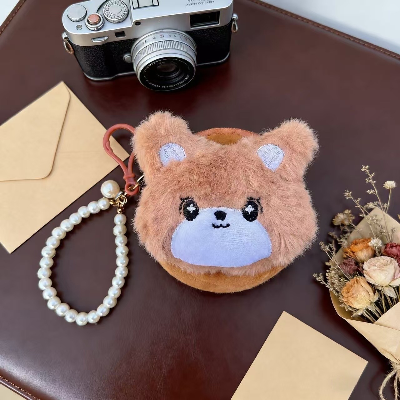 • 카멜 브라운 곰돌이 + 진주 스트랩