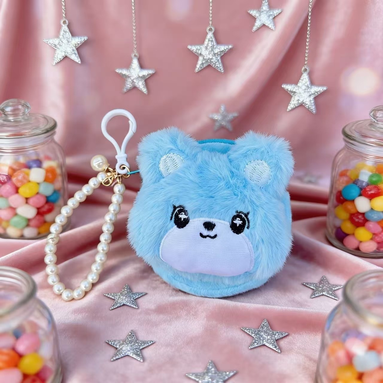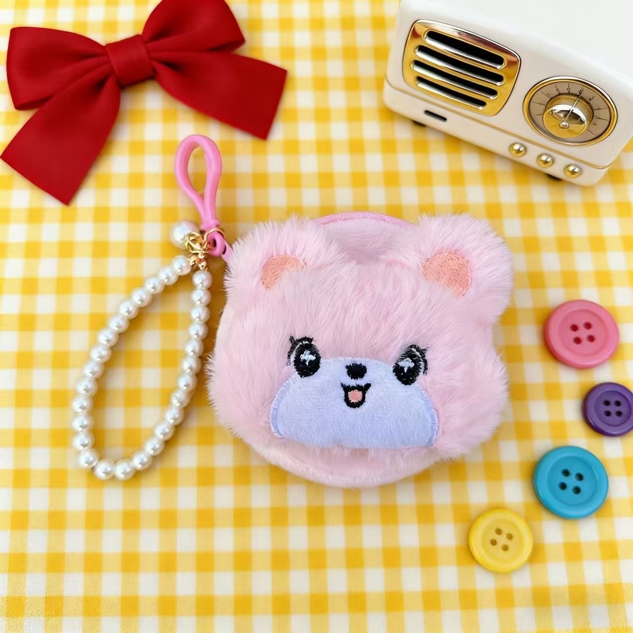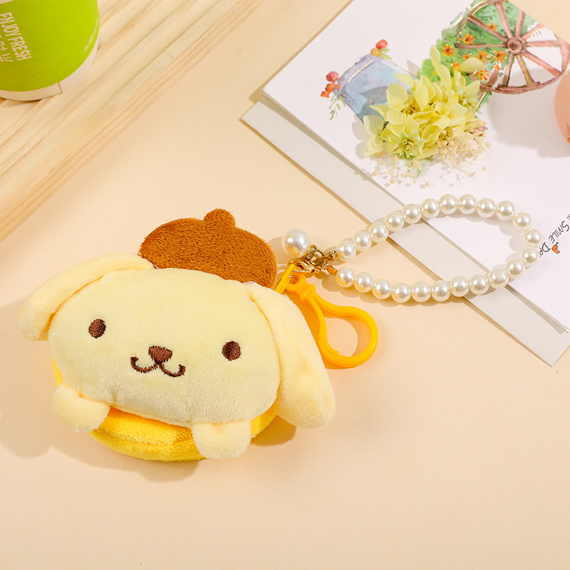 귀여운 라운드 창조적 인 봉제 동전 지갑 가방 교수형 액세서리 ID 카드 가방 진주 끈 여성용 작은 지갑 동전 가방