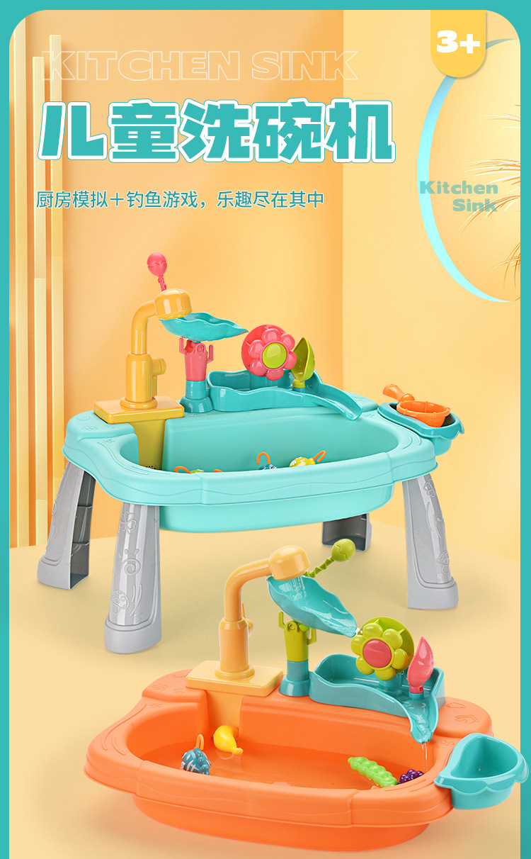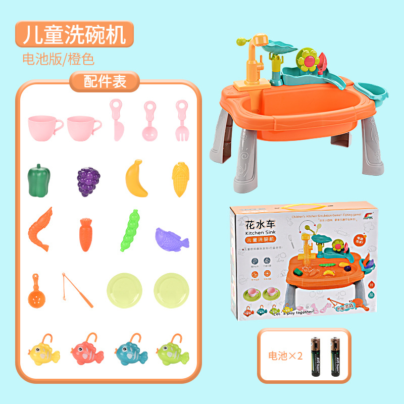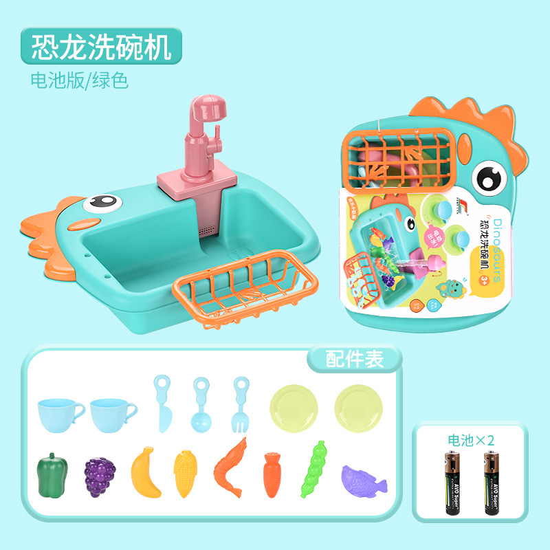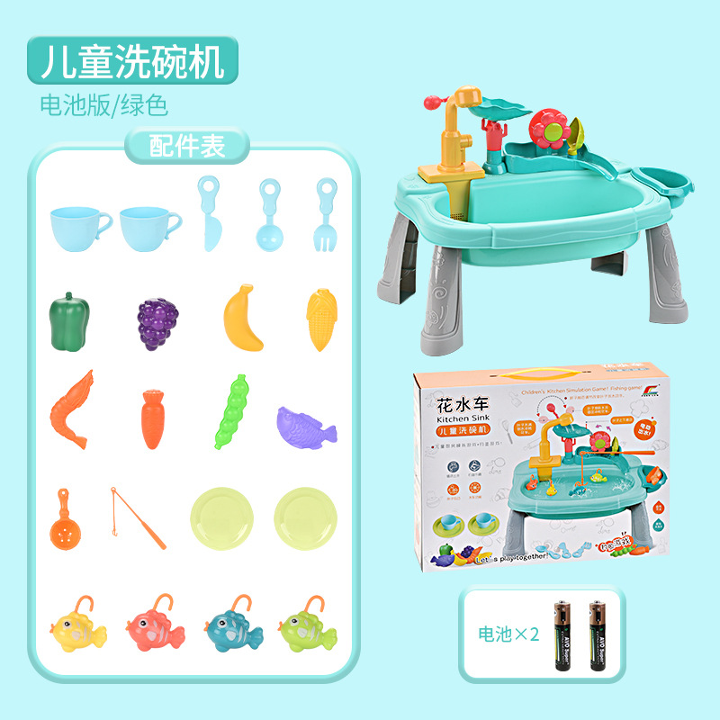 식기 세척기 테이블 장난감 어린이 야채 싱크대 분지 수도꼭지 순환 전기 놀이 집 부엌 여자 2-3 세 아이