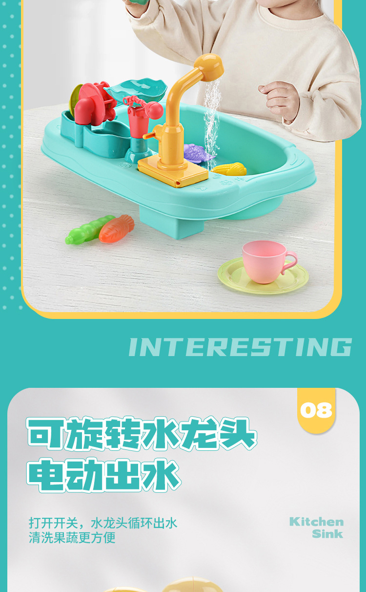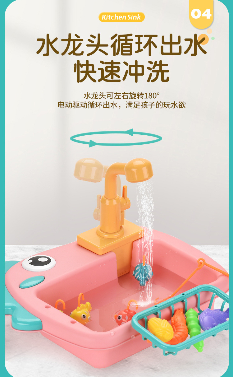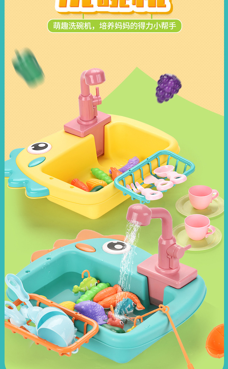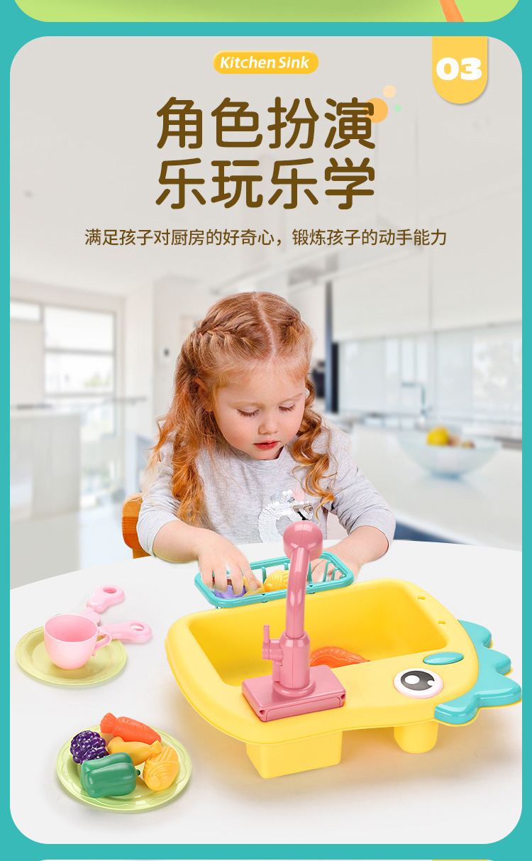 식기 세척기 테이블 장난감 어린이 야채 싱크대 분지 수도꼭지 순환 전기 놀이 집 부엌 여자 2-3 세 아이스토어 가기