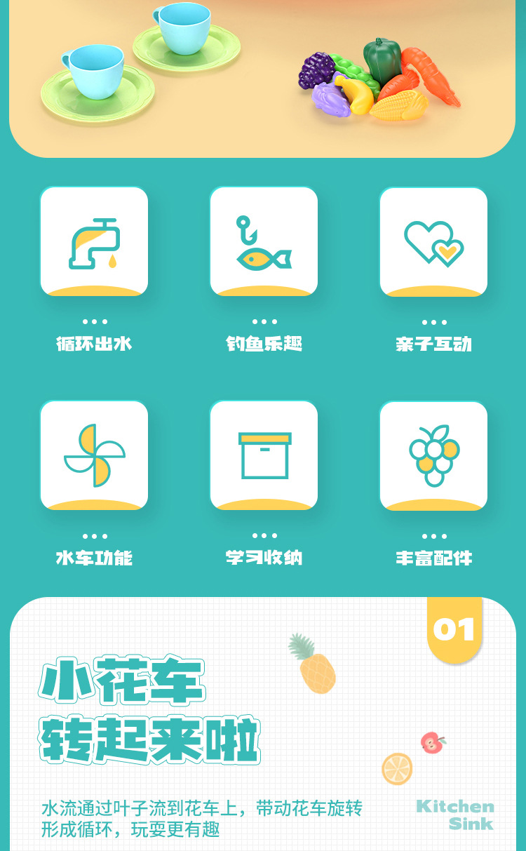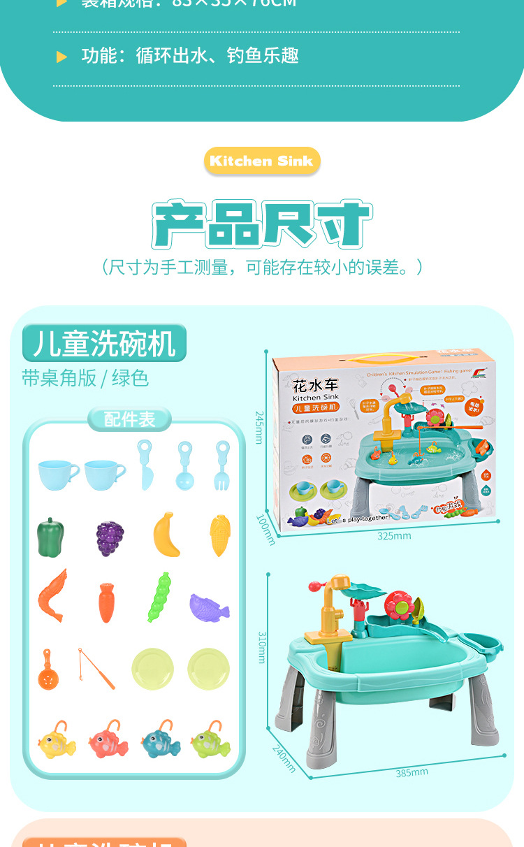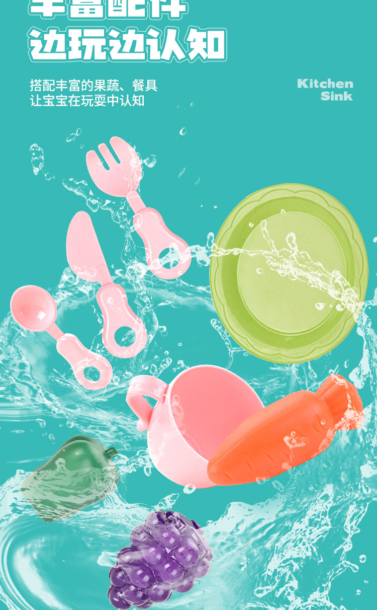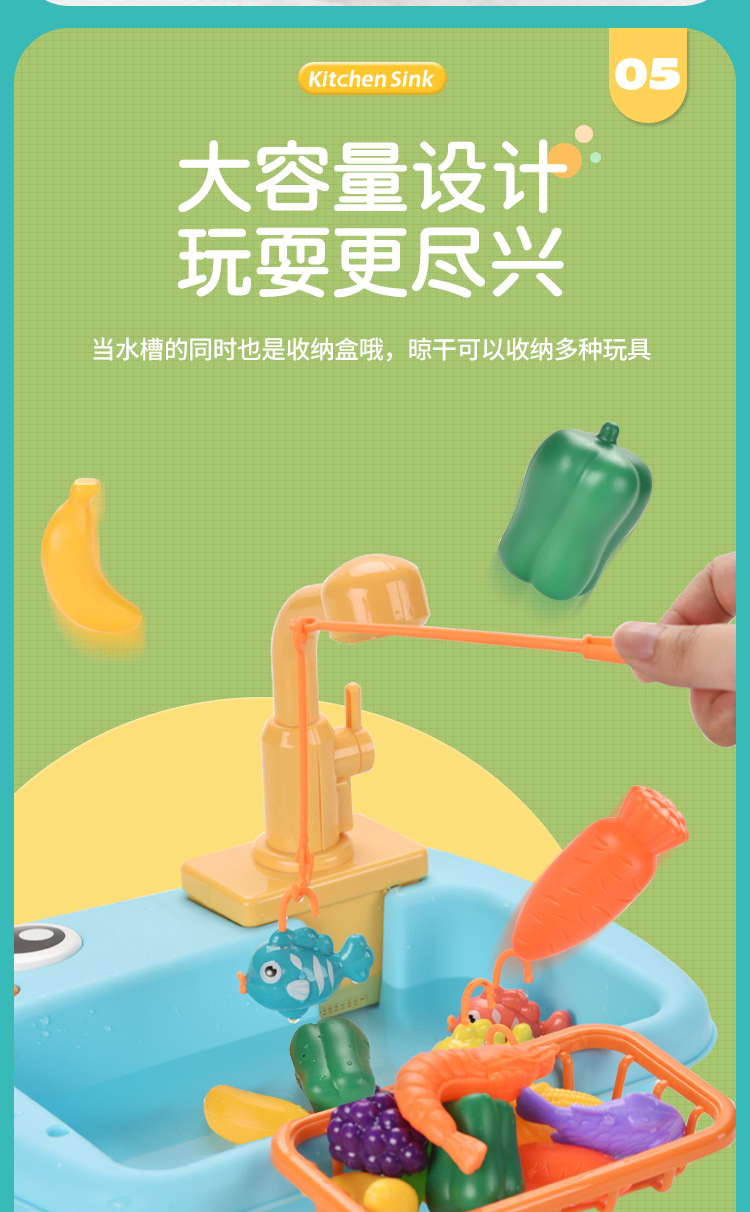 식기 세척기 테이블 장난감 어린이 야채 싱크대 분지 수도꼭지 순환 전기 놀이 집 부엌 여자 2-3 세 아이스토어 가기