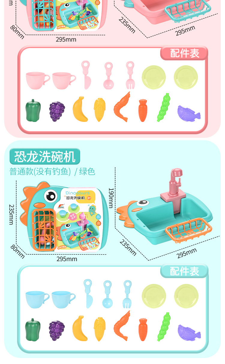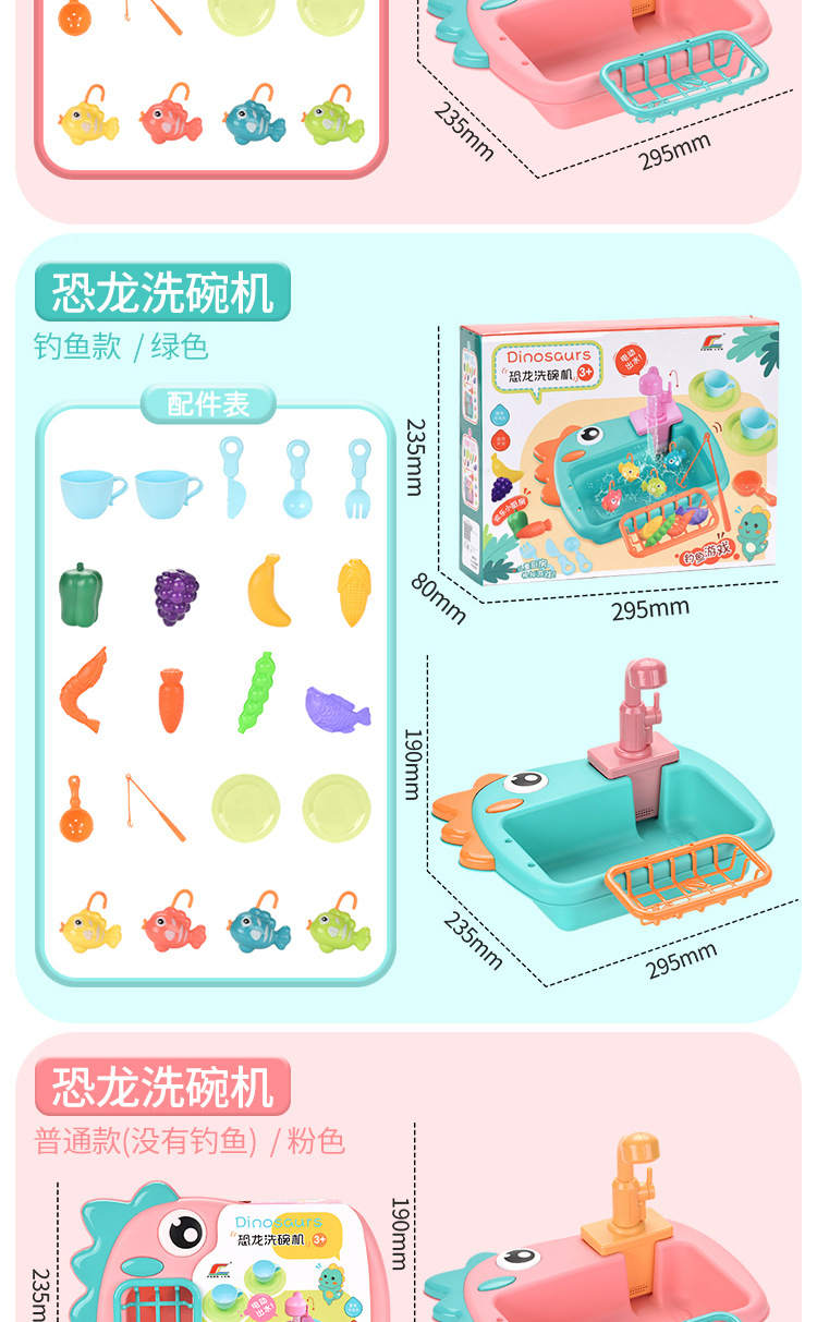 • 핑크-공룡 낚시 식기 세척기 [배터리 에디션]
