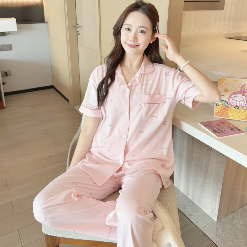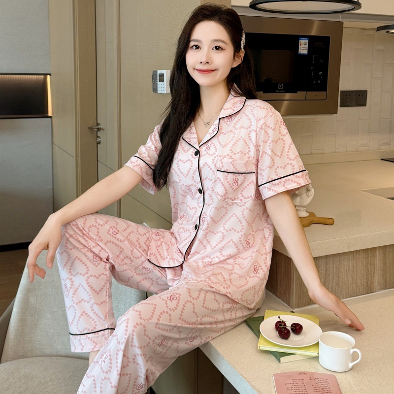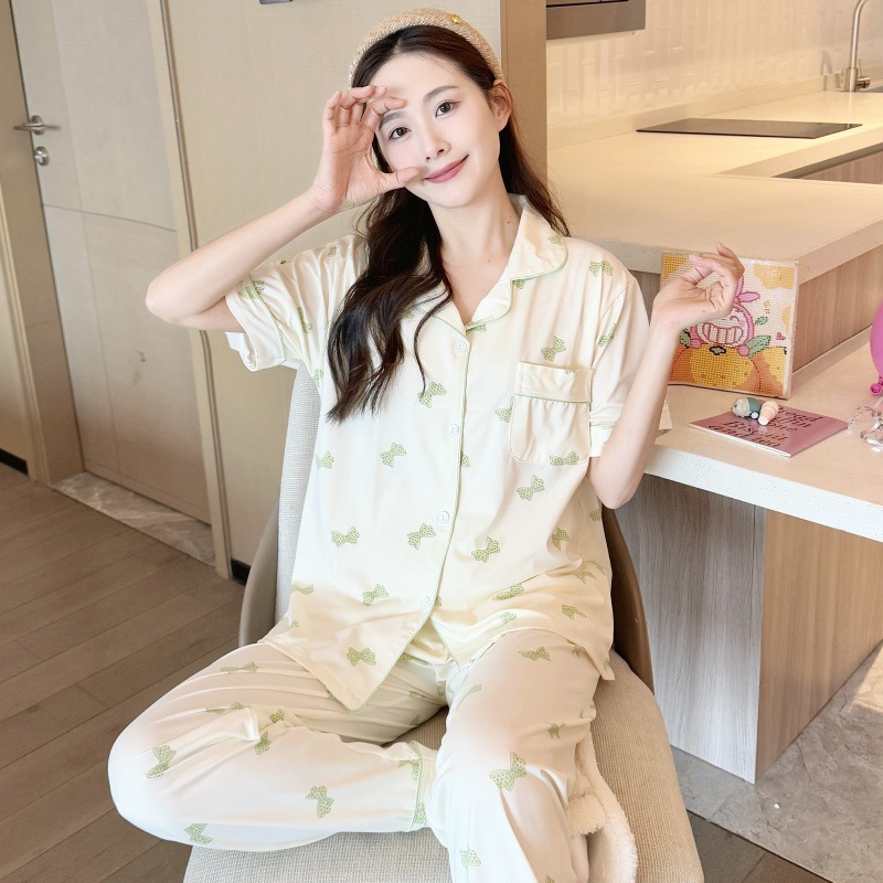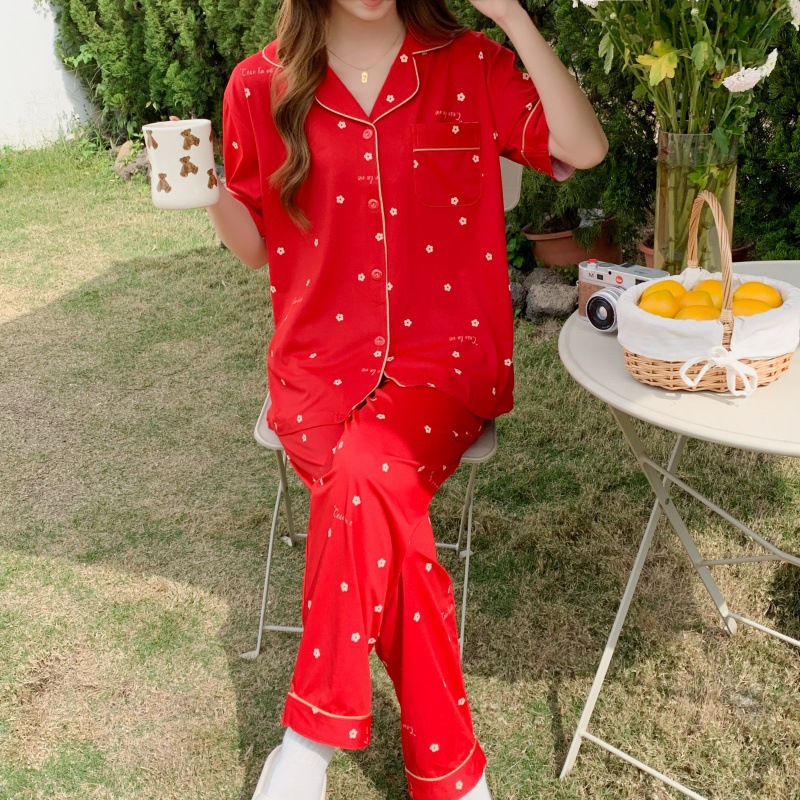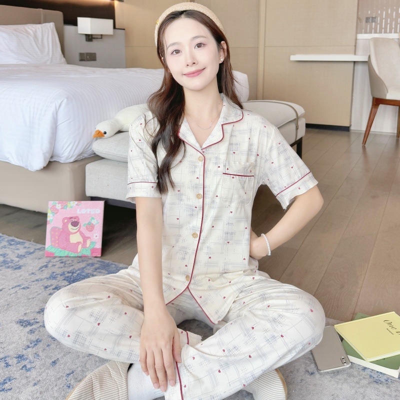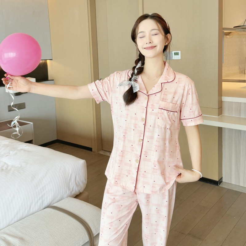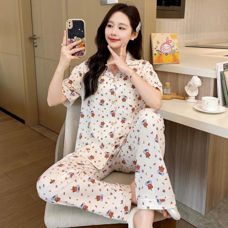 생방송 폭발적인 여름 신작 반팔 바지 잠옷 여성 심플 가디건 달콤하고 집 밖에서 입을 수 있는 옷 국경스토어 가기