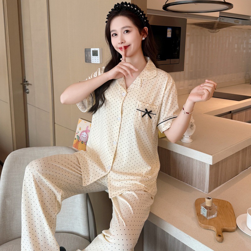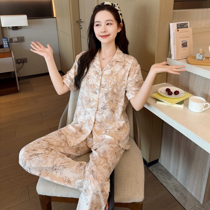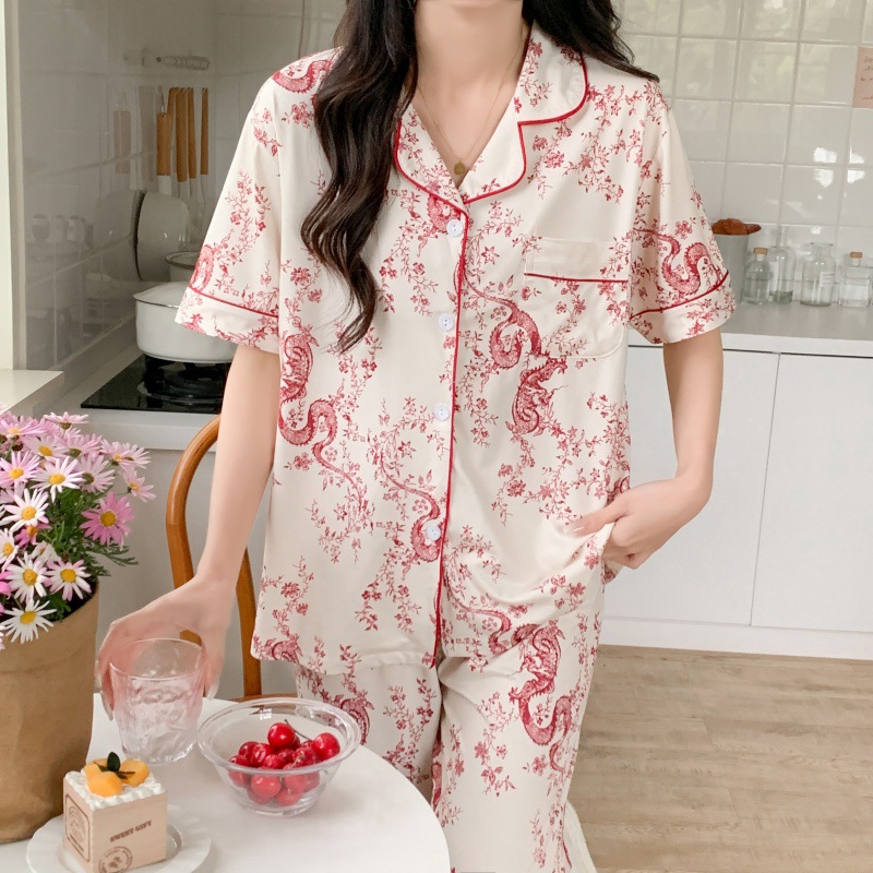 생방송 폭발적인 여름 신작 반팔 바지 잠옷 여성 심플 가디건 달콤하고 집 밖에서 입을 수 있는 옷 국경