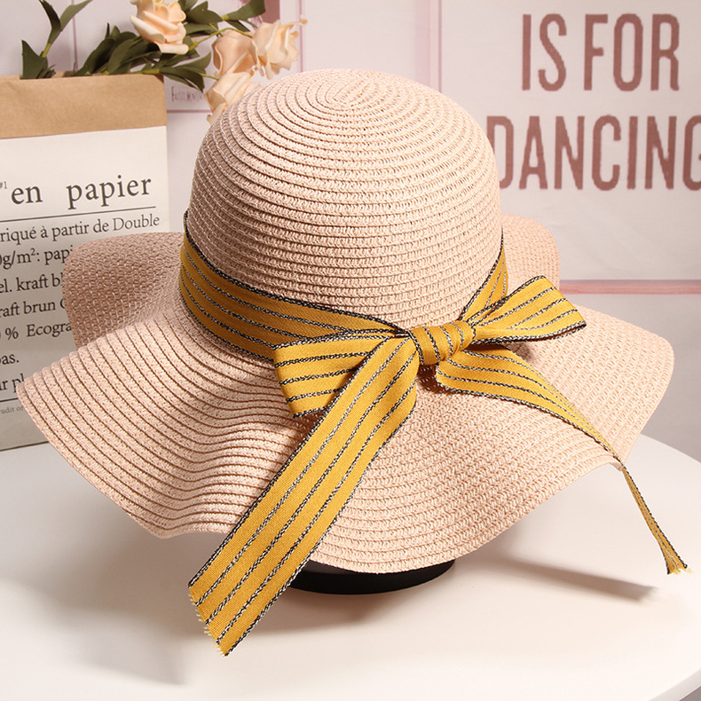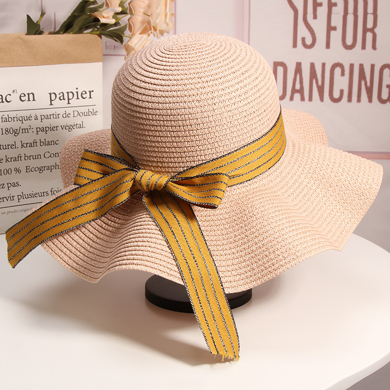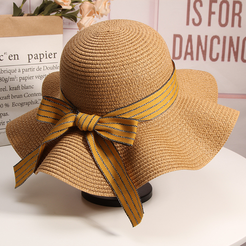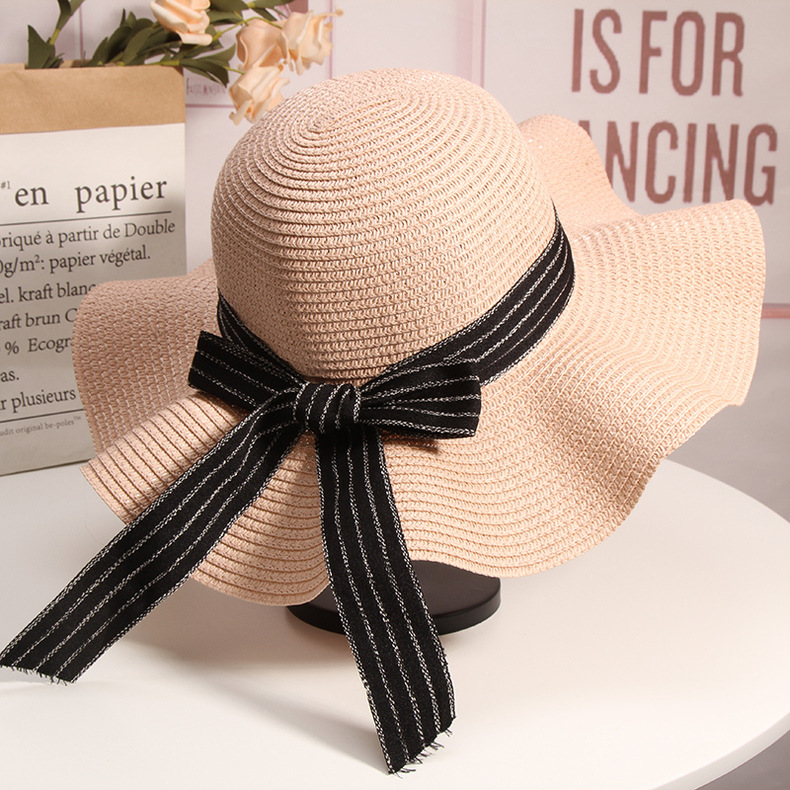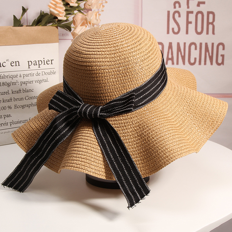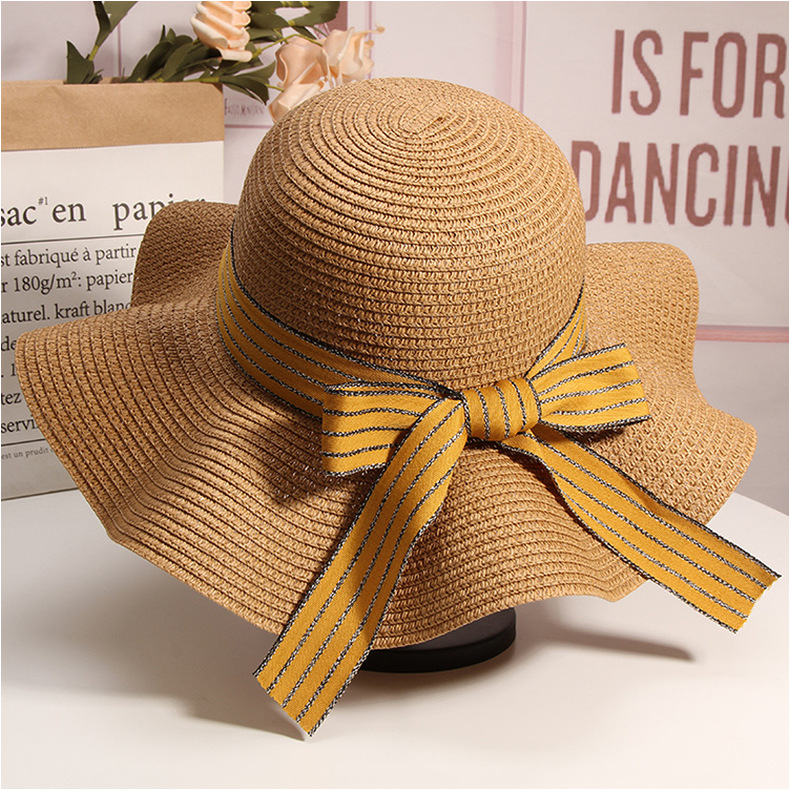 새로운 패션 여름 여성용 자외선 차단 해변용 큰 챙 밀짚모자, 통기성 좋은 해변 휴가 여행 모자