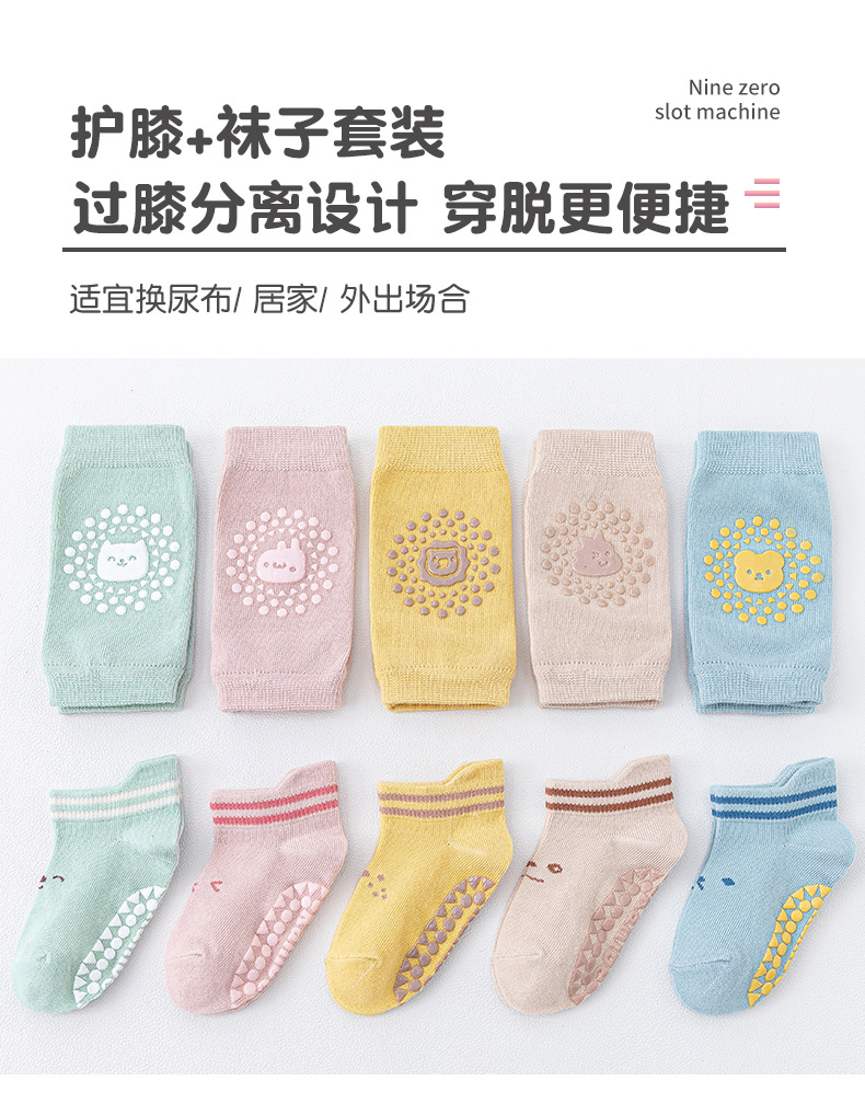 아기 무릎 패드 이른 가을 얇은 아기 바닥 양말 세트 어린이 유아 양말 접착제 분배 양말 미끄럼 방지 크롤링 양말 Zhuji스토어 가기