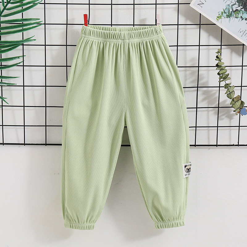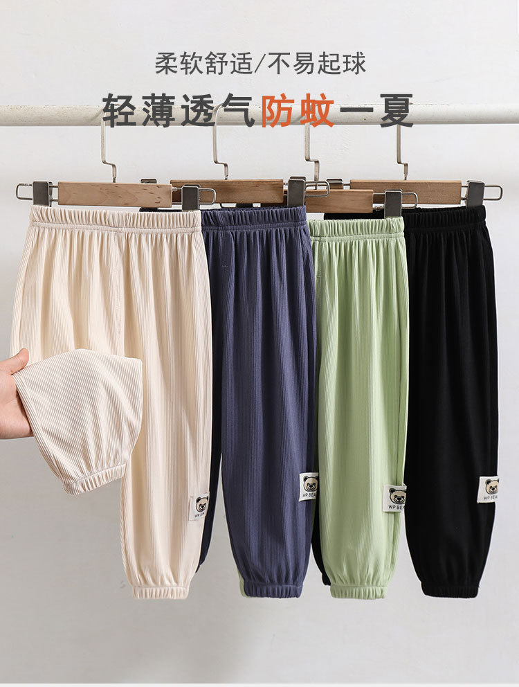 여름 새 남아 모기 방지 바지 아동복 어린이 중소 남아 및 아기 아이스 실크 발목 바지 얇은 스트레치 바지스토어 가기