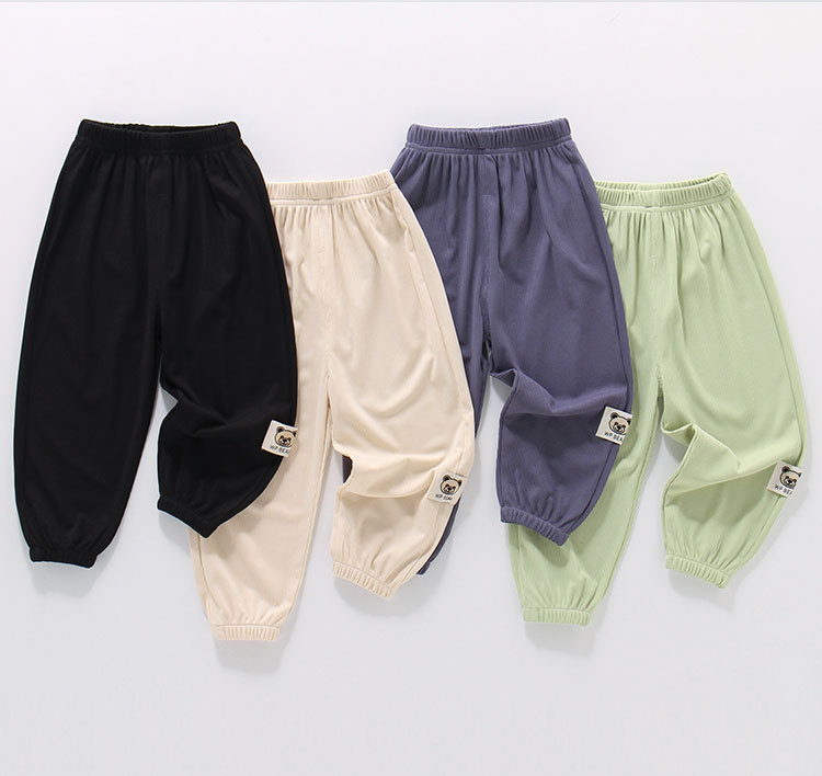 여름 새 남아 모기 방지 바지 아동복 어린이 중소 남아 및 아기 아이스 실크 발목 바지 얇은 스트레치 바지