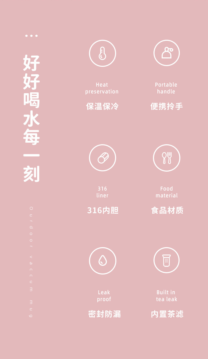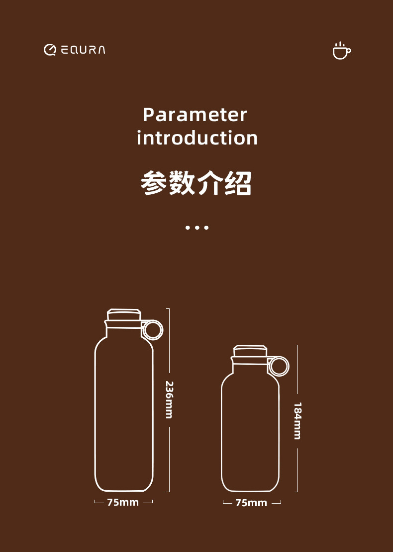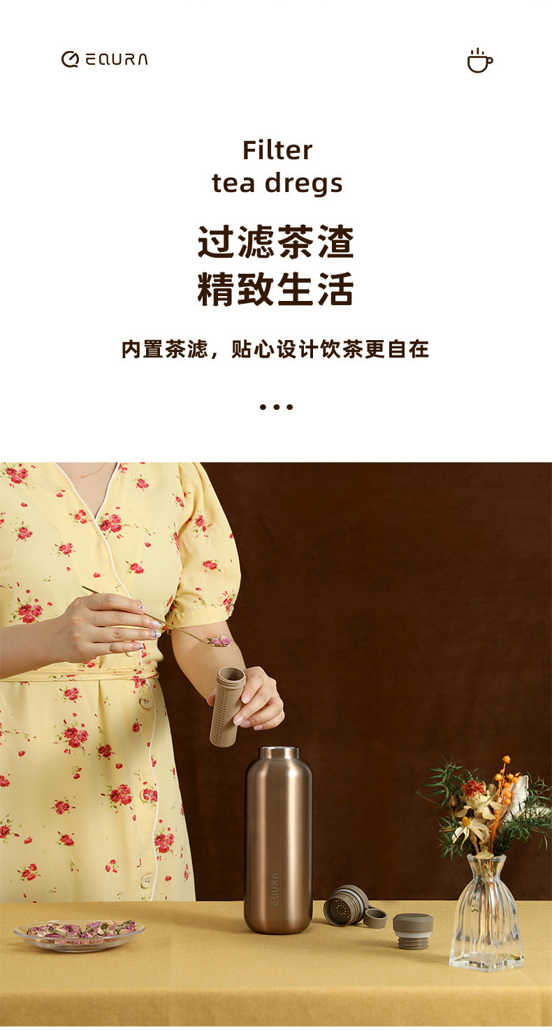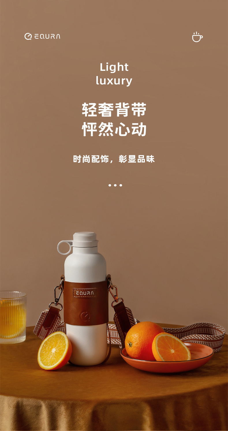 1 캐럿 EQURA316 스테인레스 스틸 커피 컵 야외 등산 스트랩 핸들 단열 컵