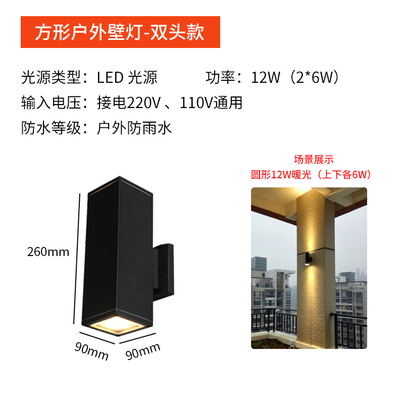 • 12W-라운드 스퀘어 웜 라이트-더블 헤드 위아래 6W