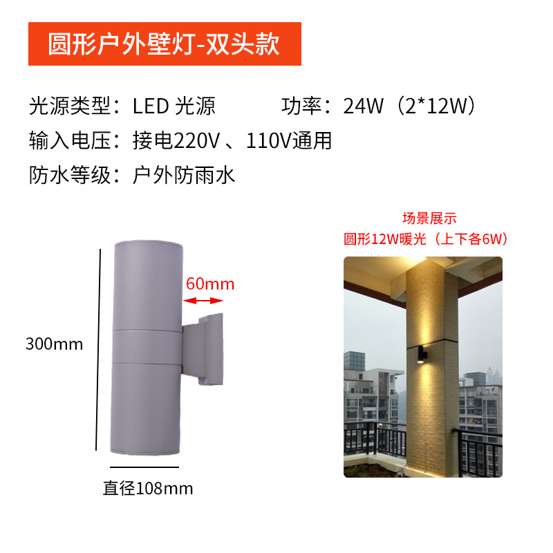 • 12W 라운드 회색 따뜻한 빛-더블 헤드 위아래 6W