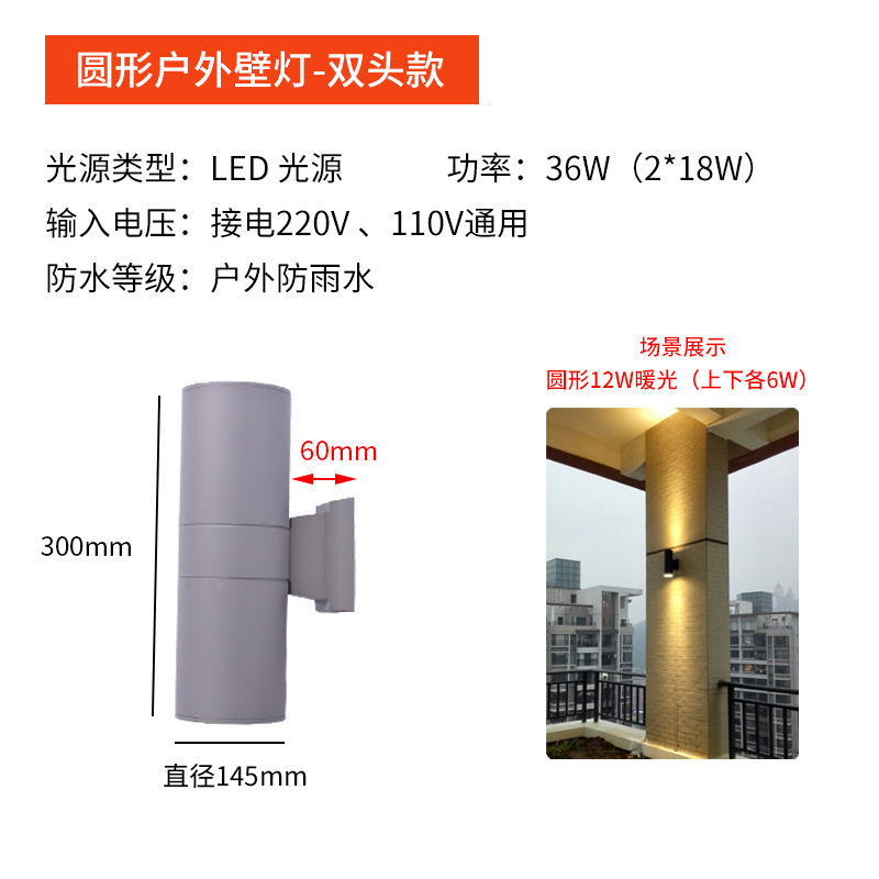 • 36W 라운드 회색 따뜻한 빛-더블 헤드 위아래 18W