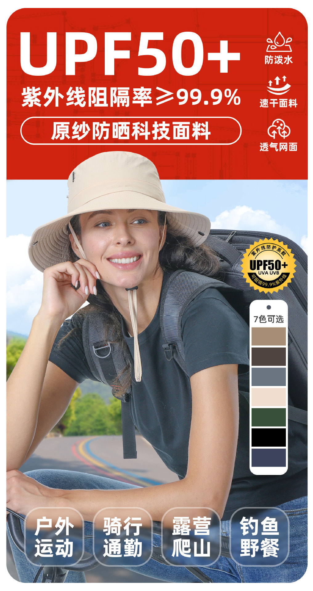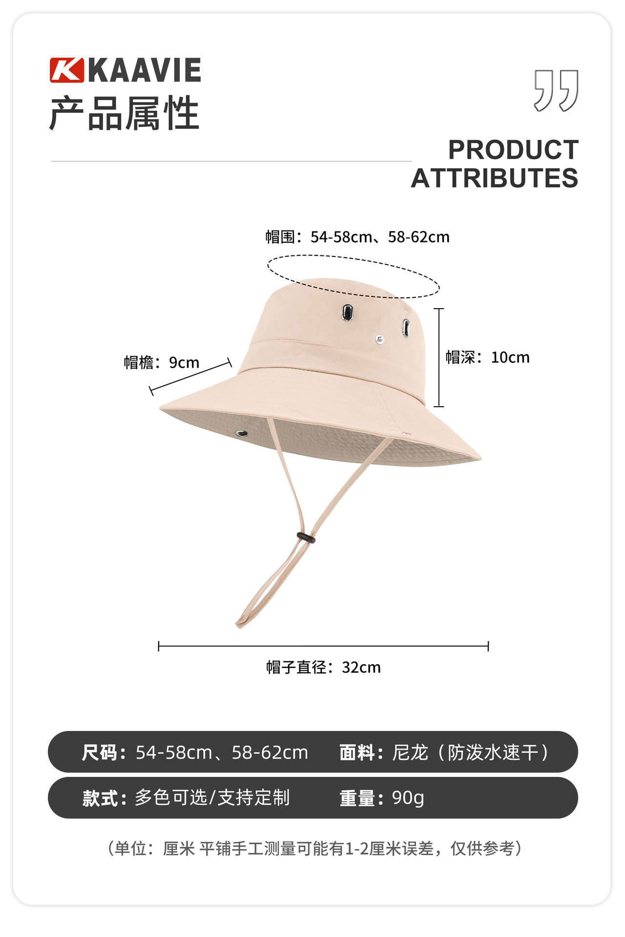 可定制高级感大檐可折叠遮阳帽 夏季登山大头围户外运动渔夫帽