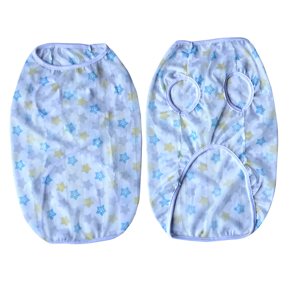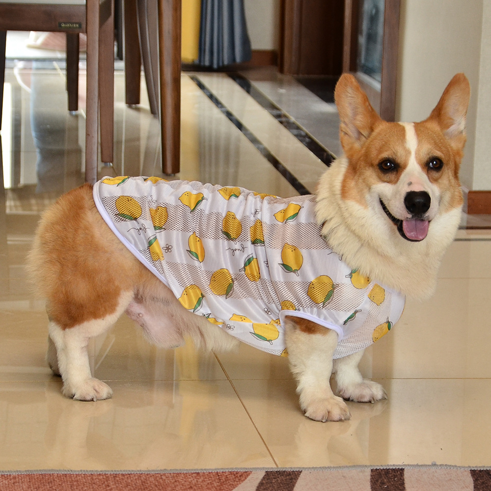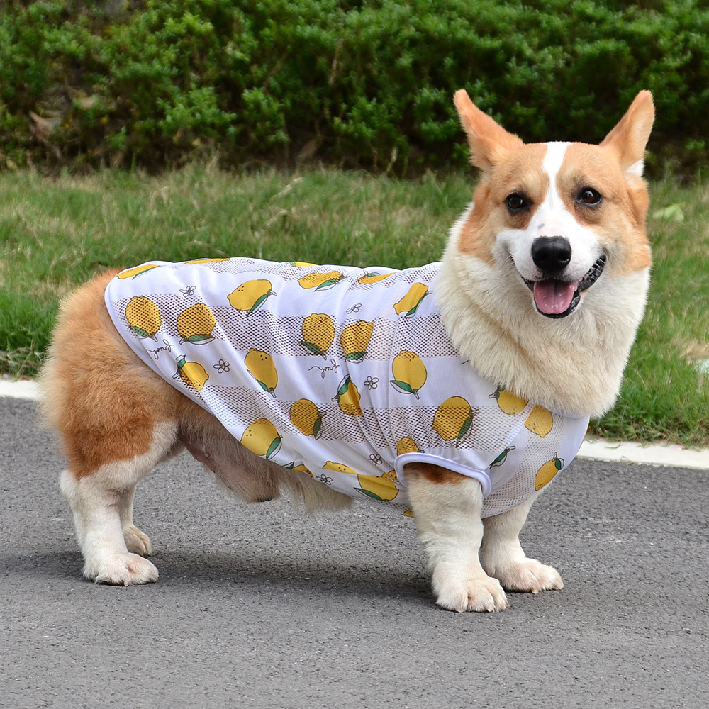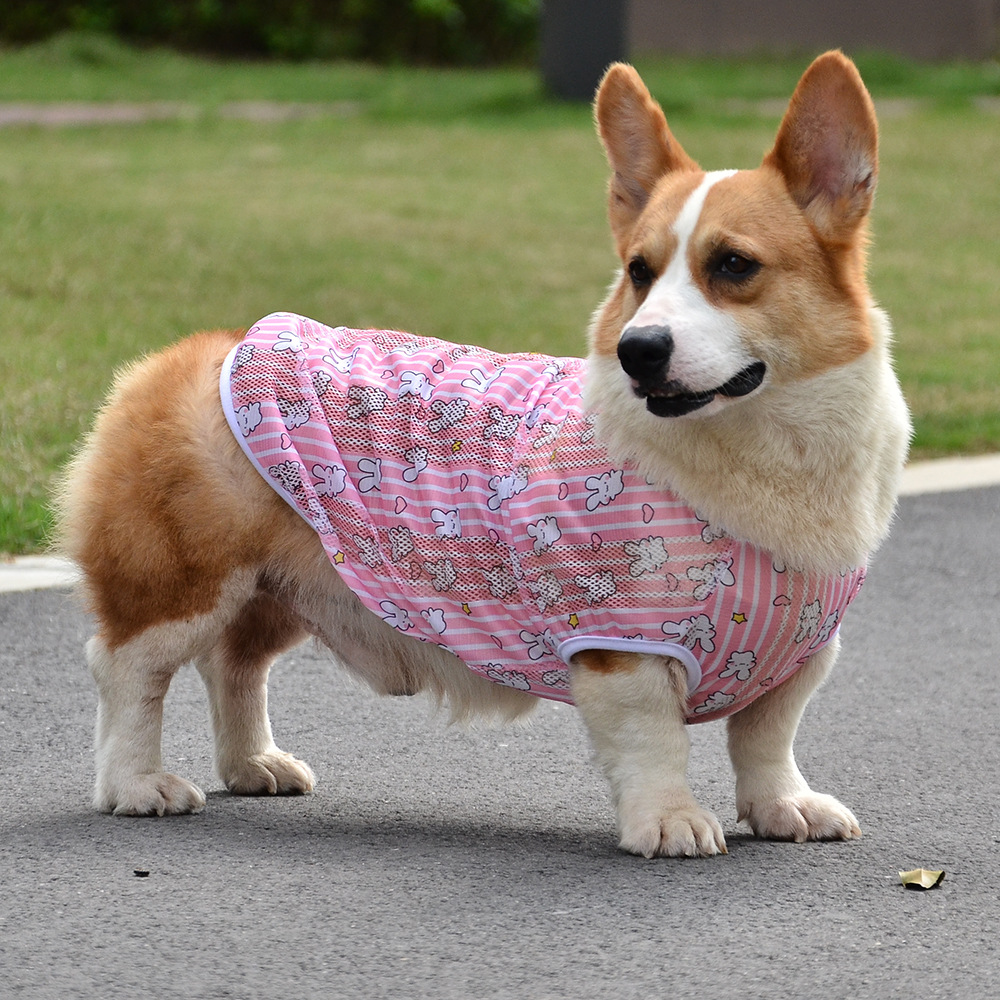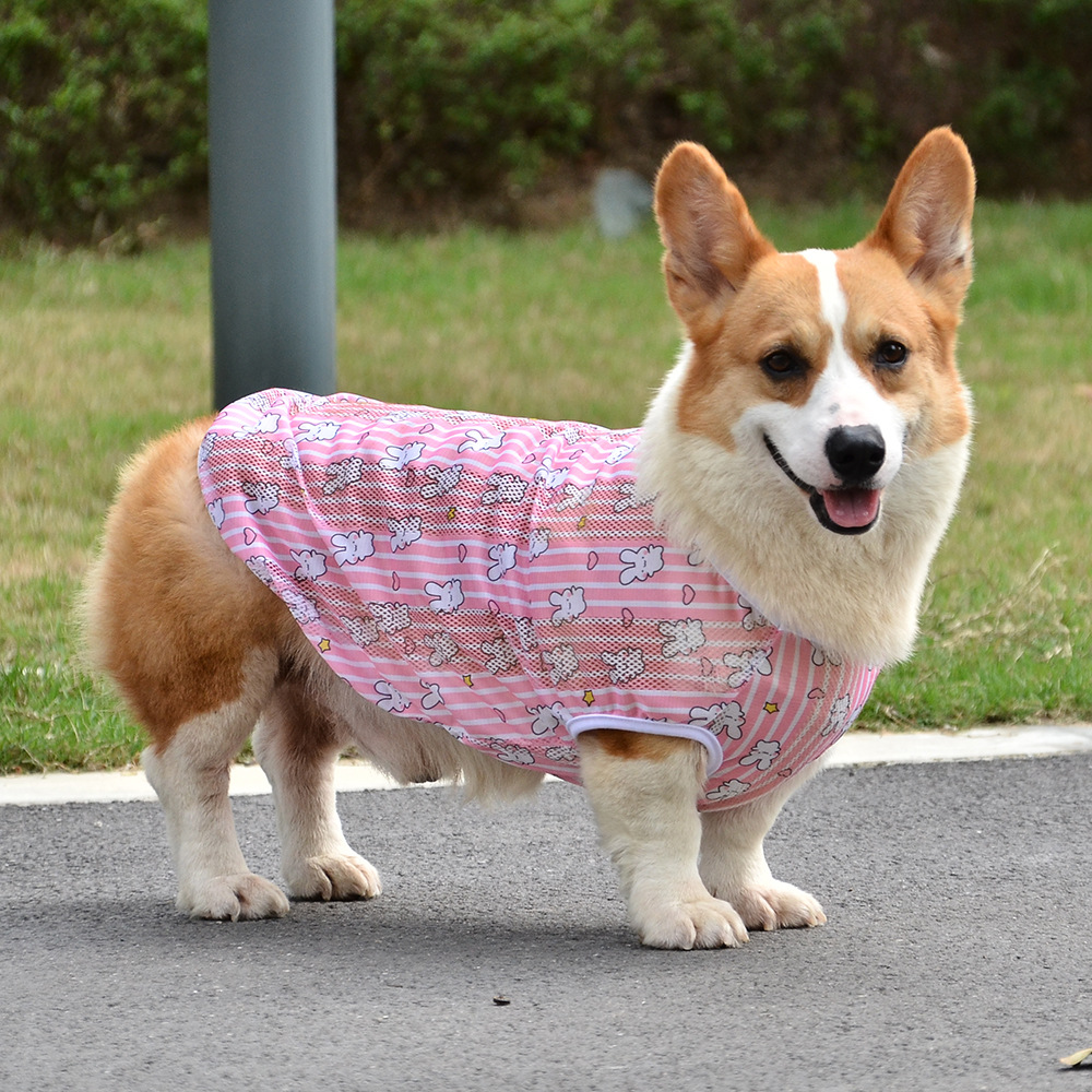 개 의류 소형, 중형 및 대형 애완 동물을위한 여름 경량 통기성 메쉬 인쇄 코기 의류 안티 울 조끼