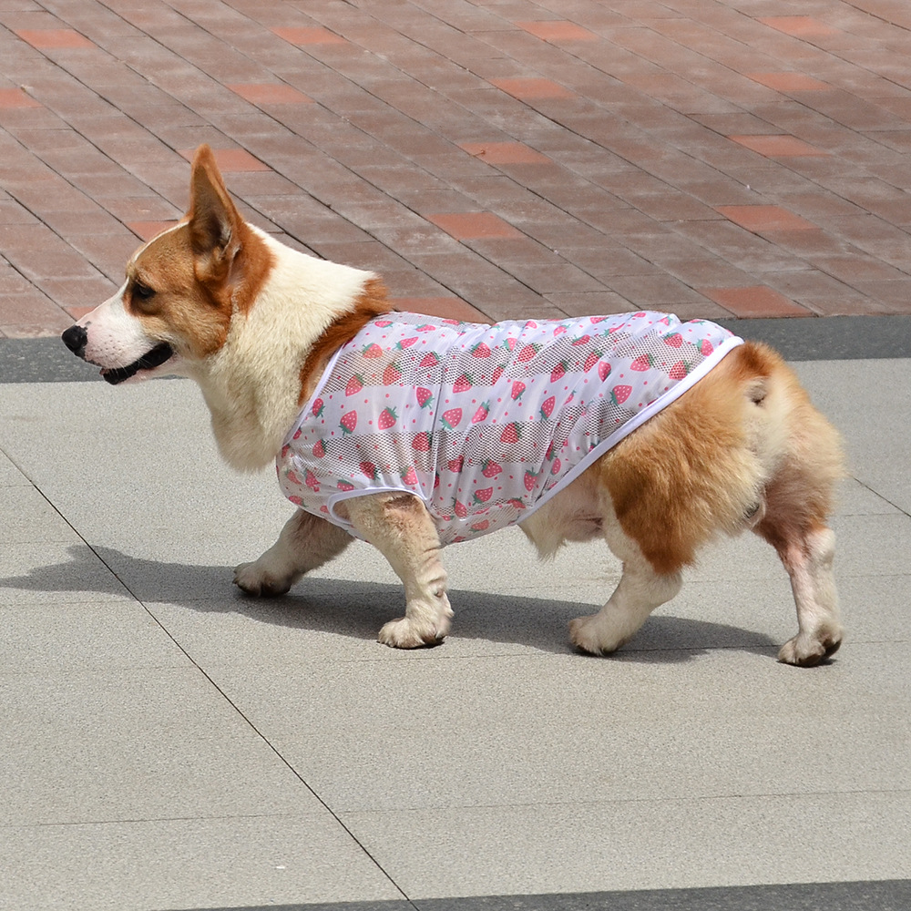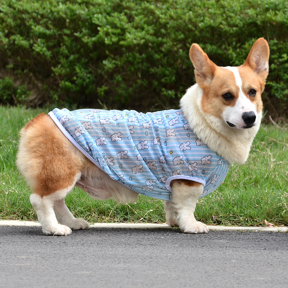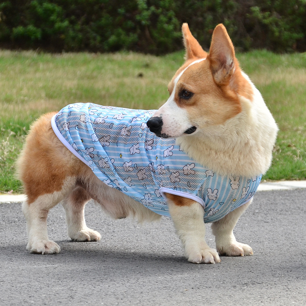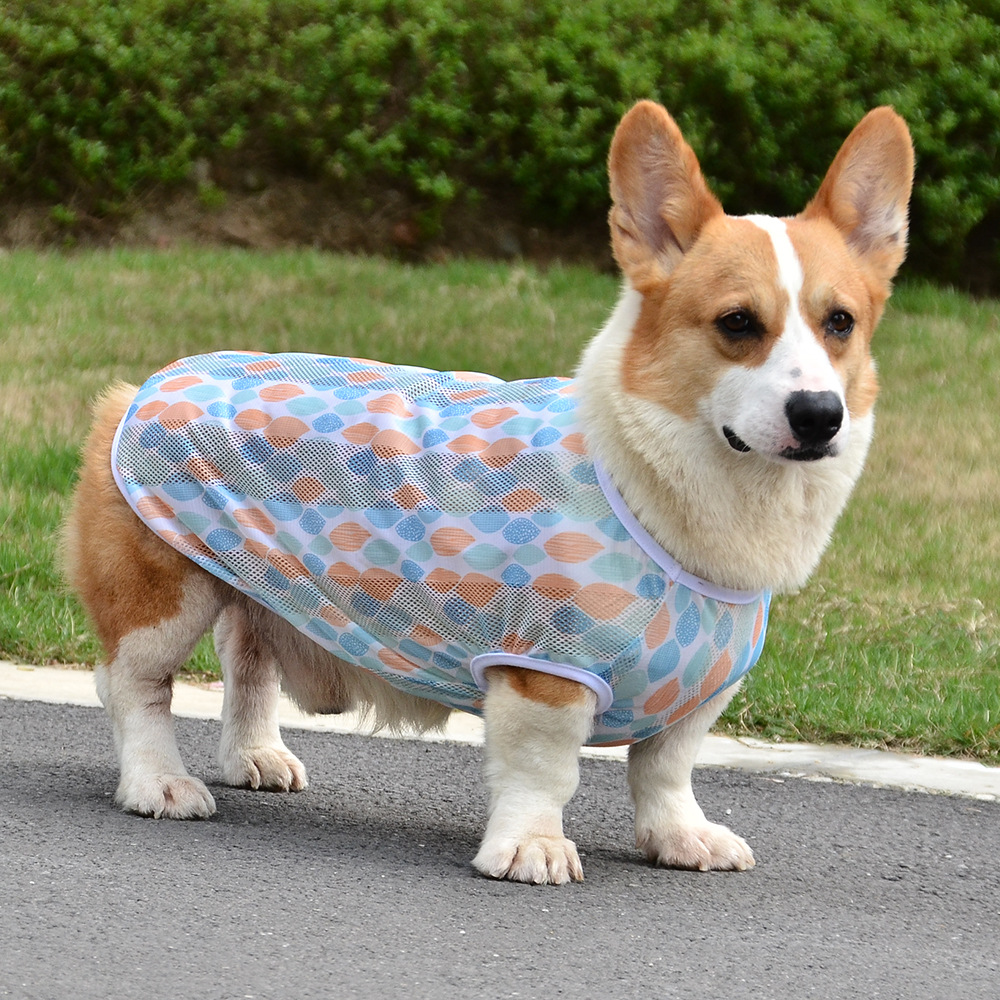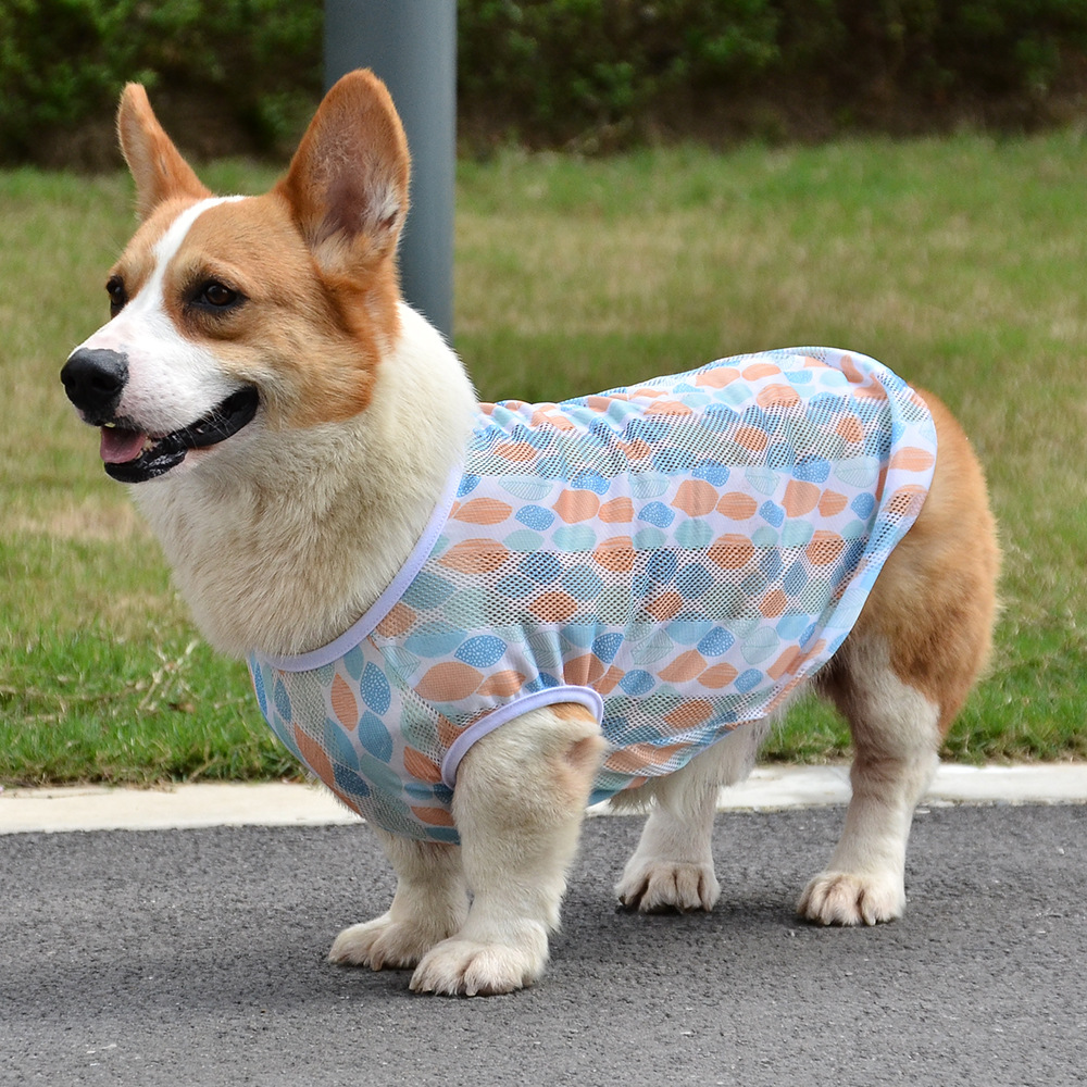 개 의류 소형, 중형 및 대형 애완 동물을위한 여름 경량 통기성 메쉬 인쇄 코기 의류 안티 울 조끼스토어 가기
