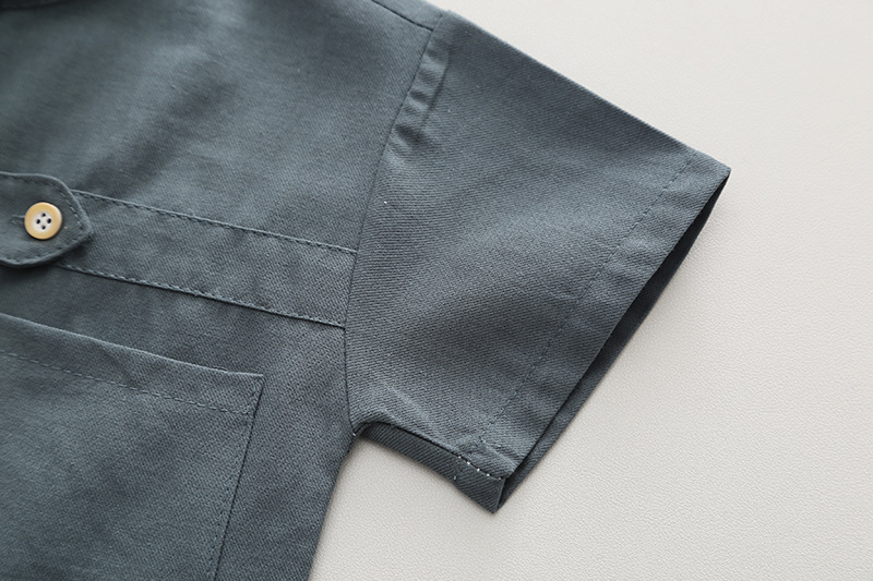 2023 여름 새로운 디자인 감각 조수 아이 착용 세트 단색 셔츠 반팔 반바지 투피스 공장 도매