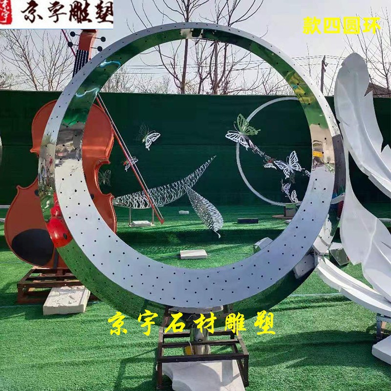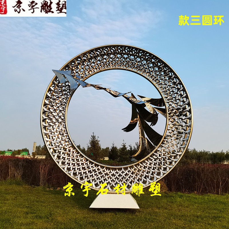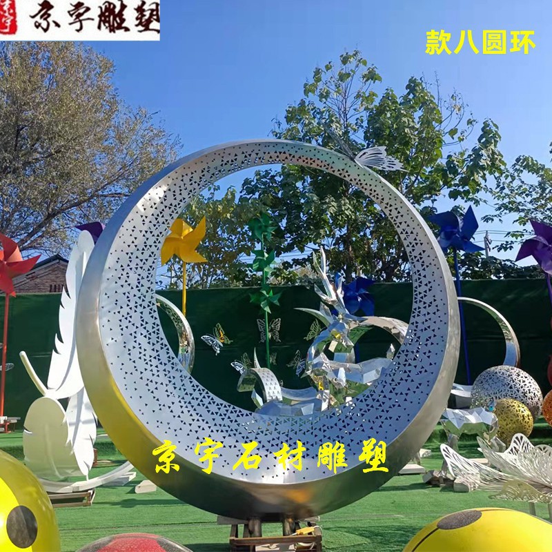 스테인레스 스틸 달 조각 속이 빈 빛나는 물 풍경 추상 사슴 나비 초승달 댄서 반지 정원 야외 장식스토어 가기