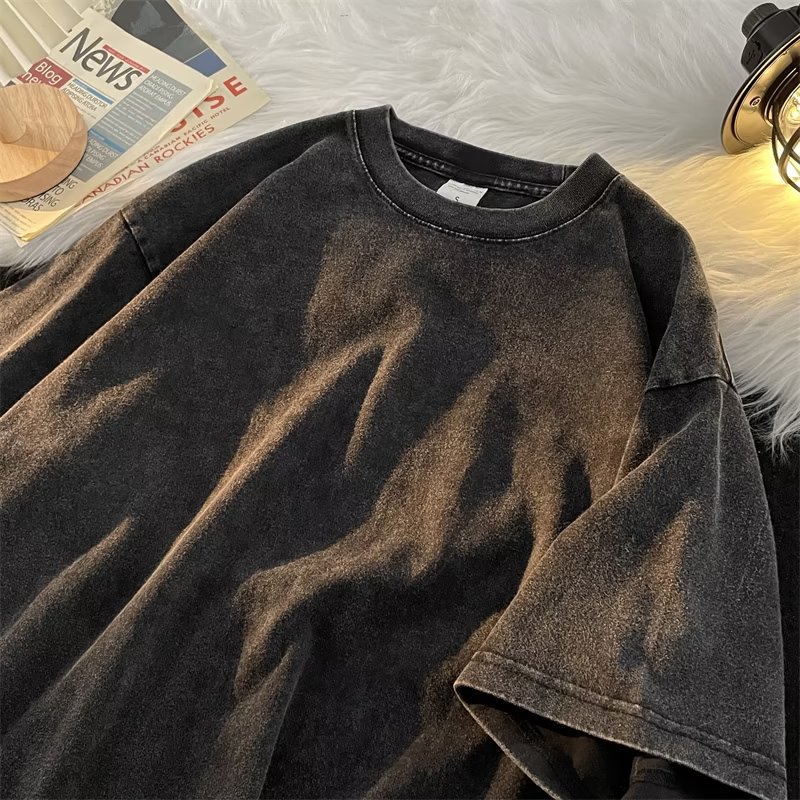 레트로 아메리칸 반팔 티셔츠 남성용 헤비 워싱 디스트레스드 코튼 여름 루즈한 반팔 올매치 탑스토어 가기