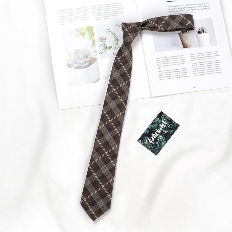 다크 브라운 넥타이 여자의 jk 일본식 대학 스타일 무료 셔츠 dk 넥타이 남자의 복고풍 짧은 게으른 격자 무늬 작은 넥타이스토어 가기