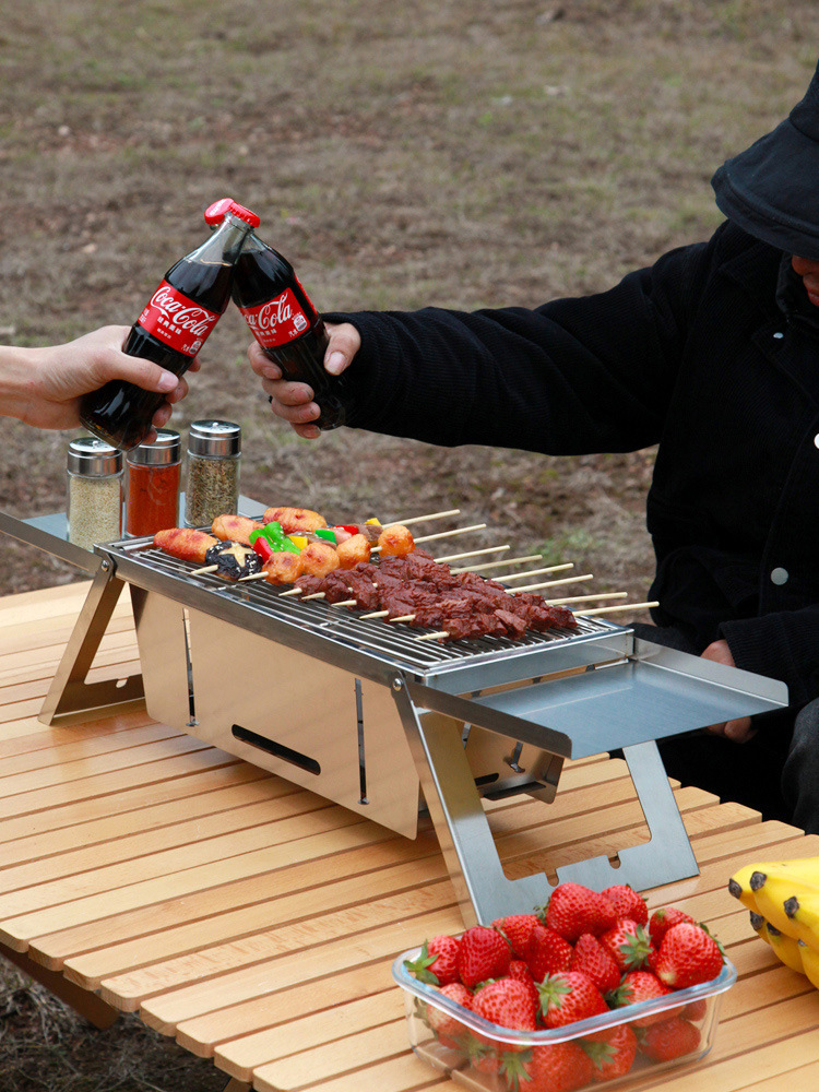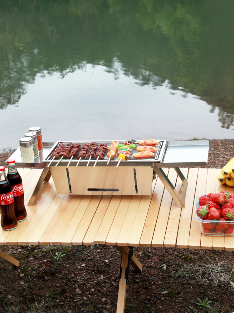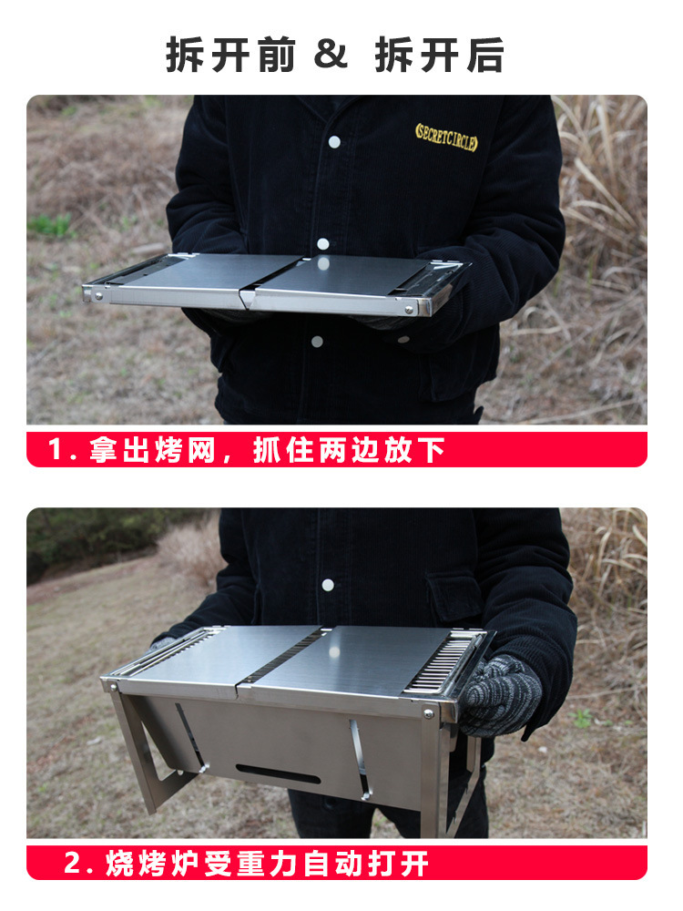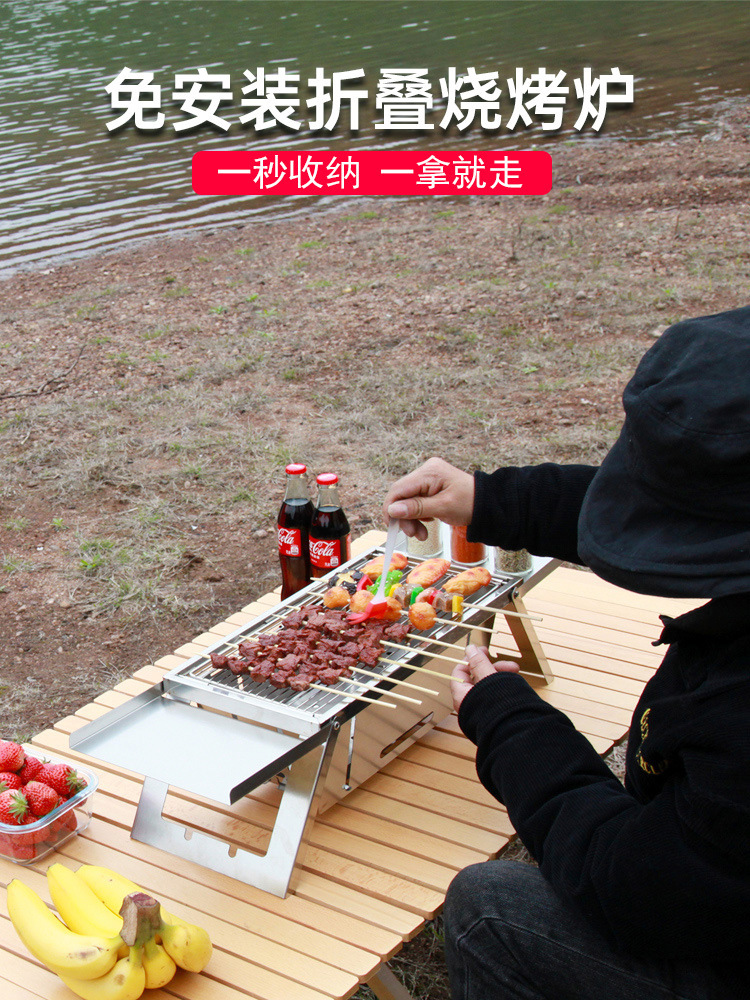 야외 숯 두꺼운 바베큐 그릴 스테인레스 스틸 바베큐 그릴 가정용 소형 1 초 접이식 숯불 그릴스토어 가기