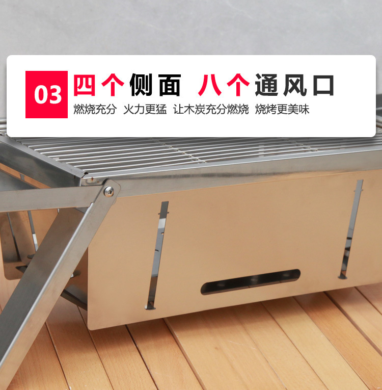 야외 숯 두꺼운 바베큐 그릴 스테인레스 스틸 바베큐 그릴 가정용 소형 1 초 접이식 숯불 그릴