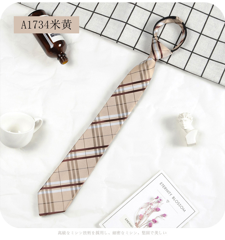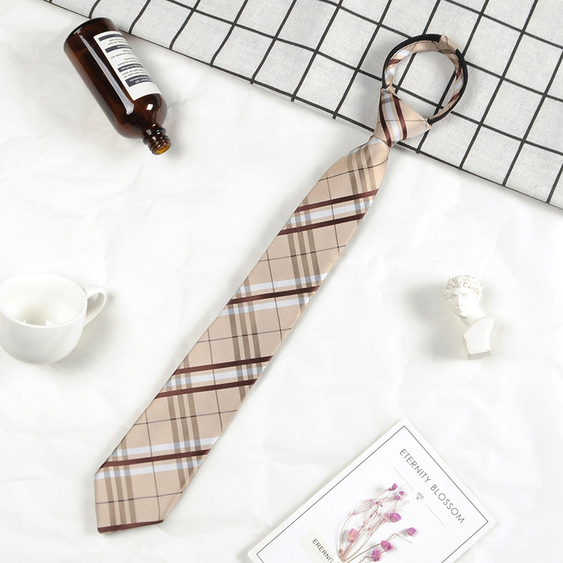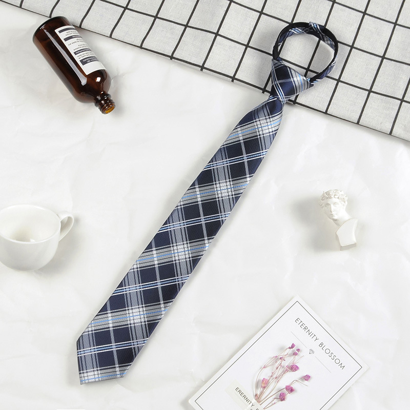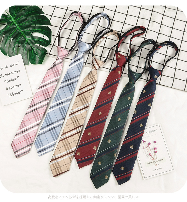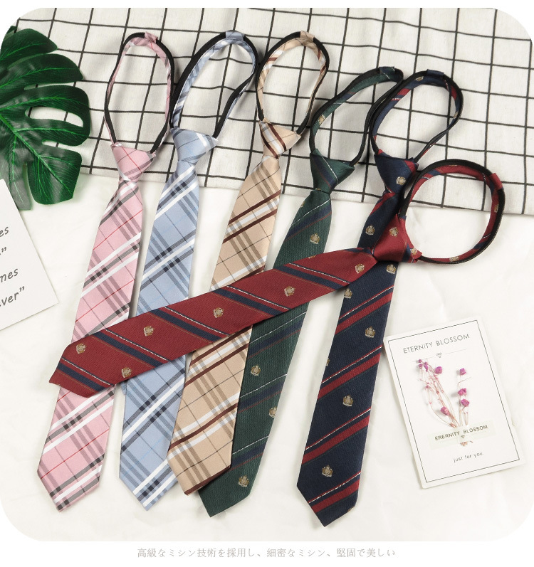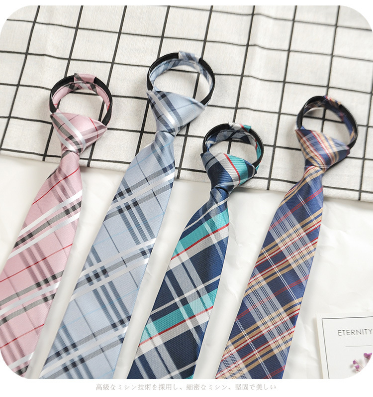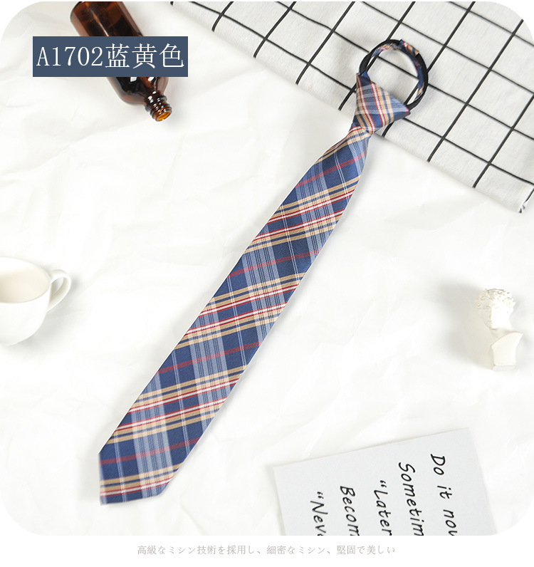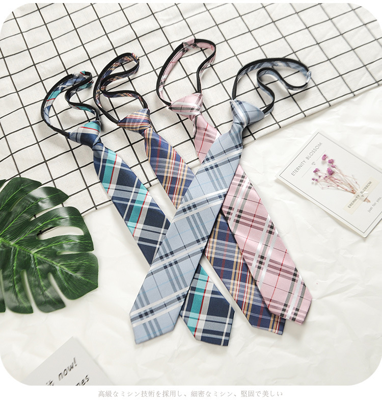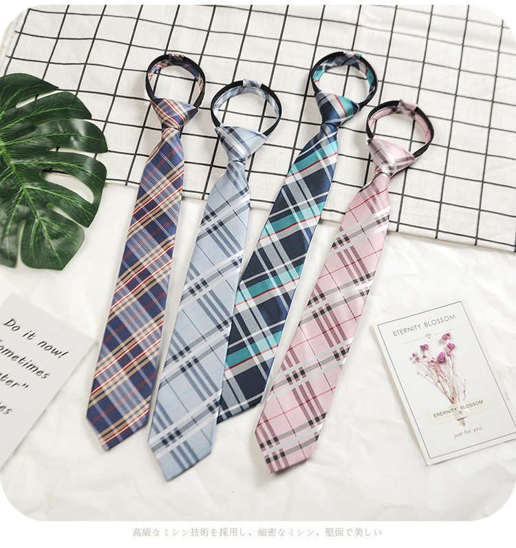 남성과 여성 학생을위한 하라주쿠 스타일 일본식 격자 무늬 셔츠 좁은 넥타이 한국 유행 격자 무늬 게으른 지퍼스토어 가기