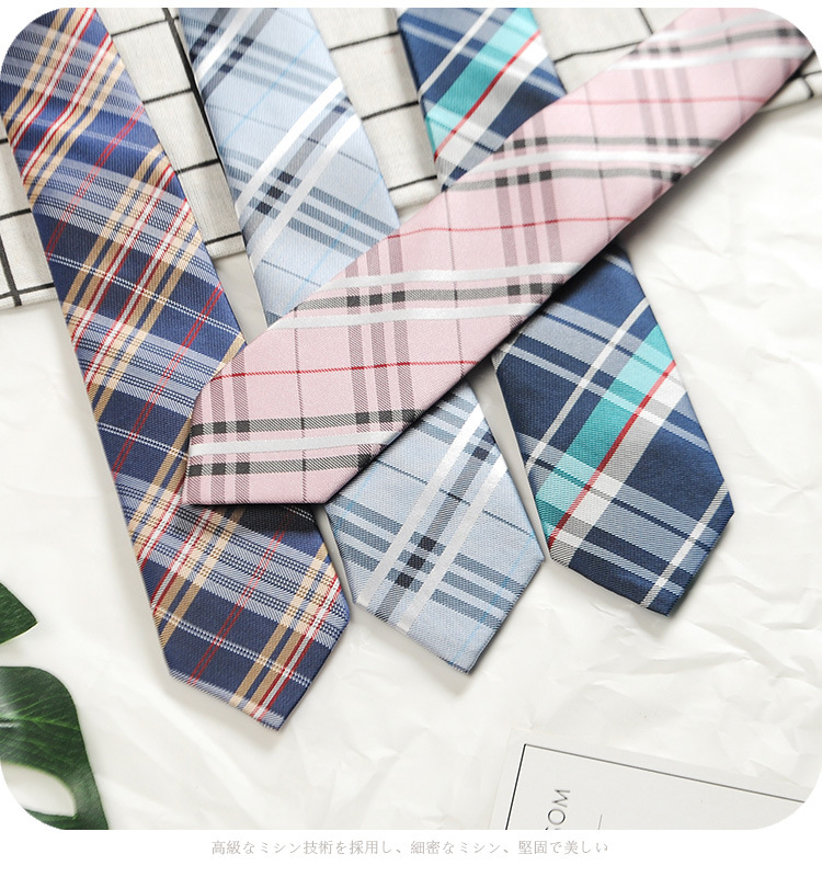 남성과 여성 학생을위한 하라주쿠 스타일 일본식 격자 무늬 셔츠 좁은 넥타이 한국 유행 격자 무늬 게으른 지퍼