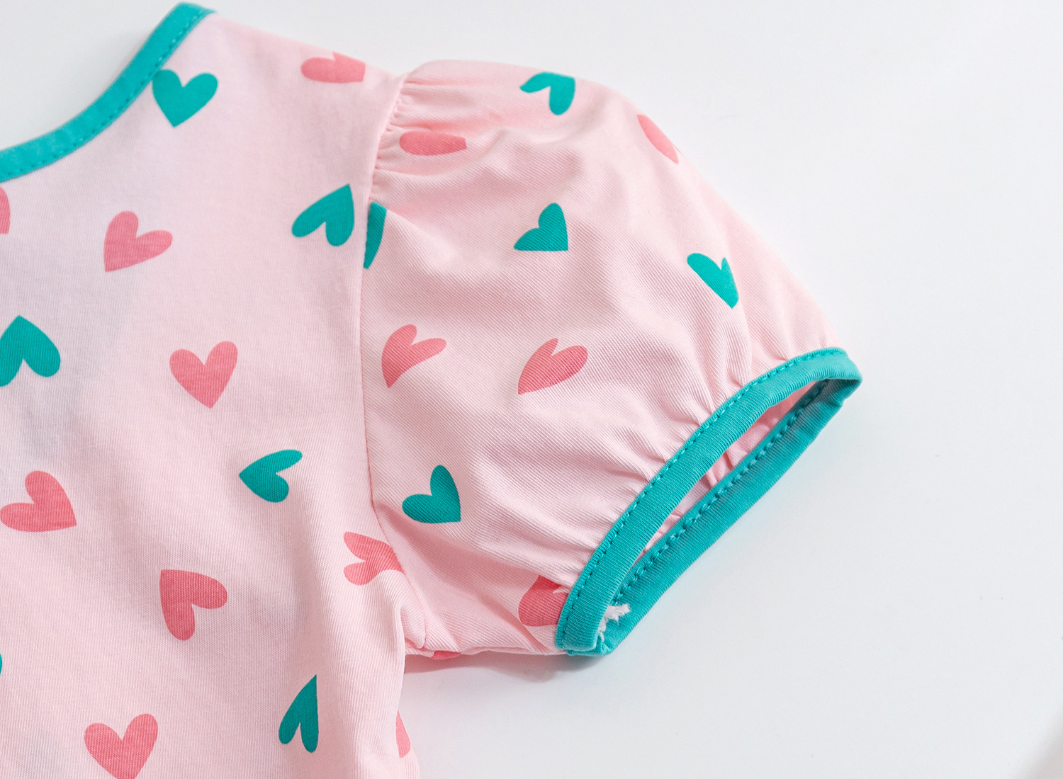 童装女童爱心蝴蝶结短袖T恤2023年夏季新款泡泡袖纯棉半袖打底衫