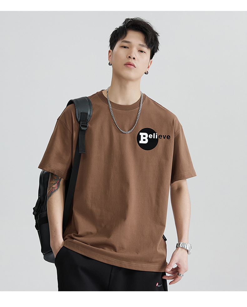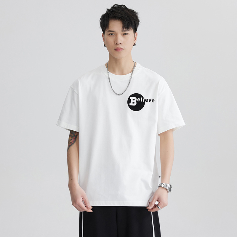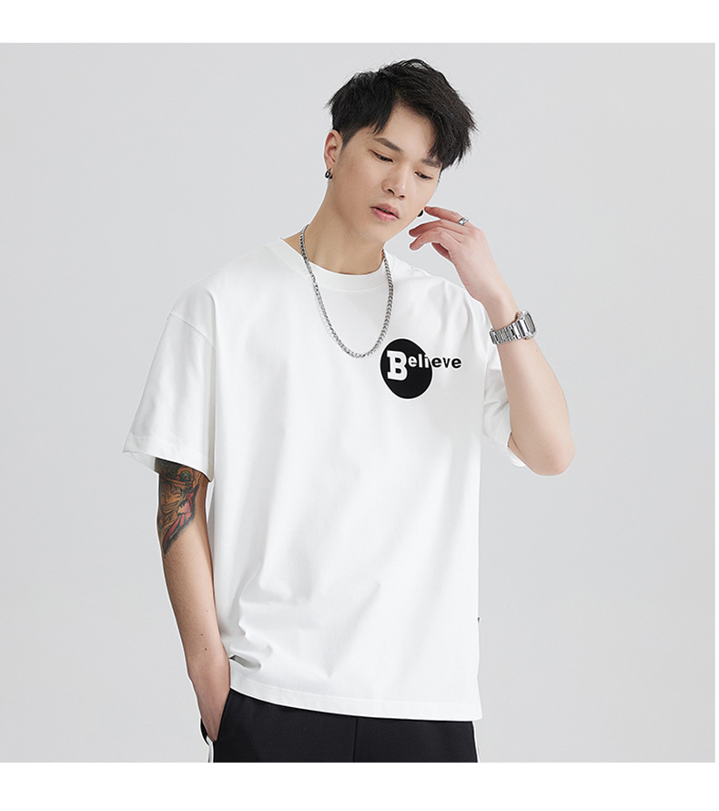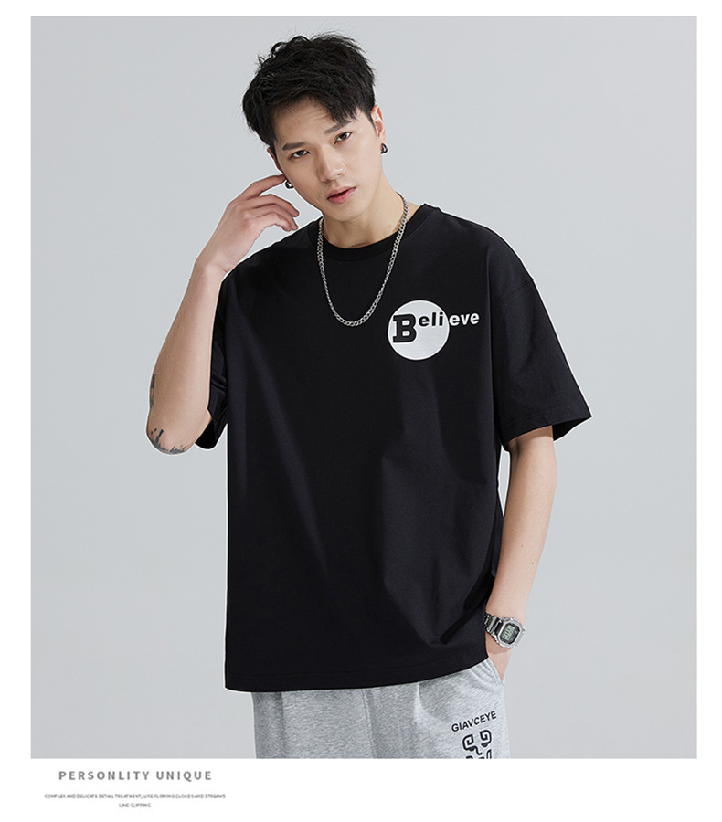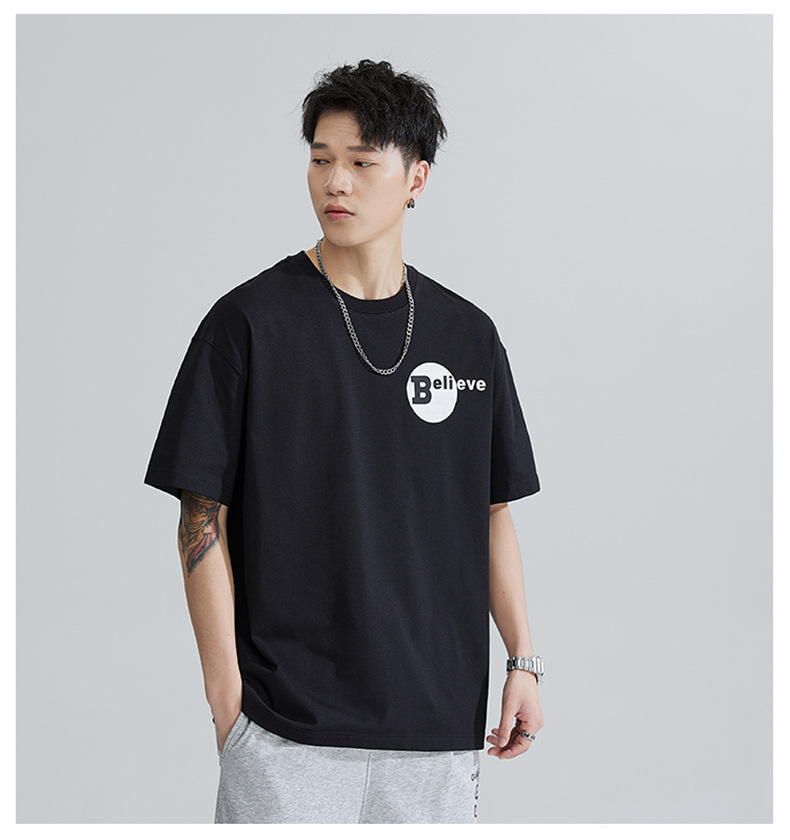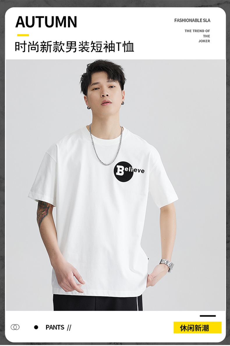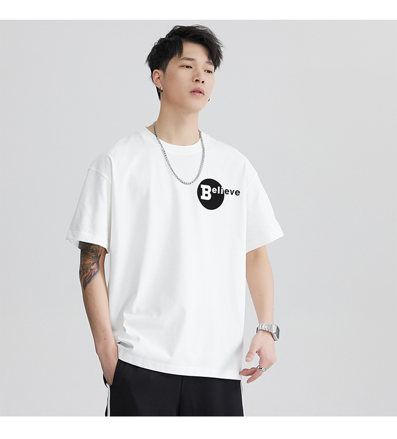 T3305 | 플러스 사이즈 남자의 여름 새로운 일본어 260g 무거운 크루넥 티셔츠 남자의 무리 인쇄 편지 짧은 소매스토어 가기