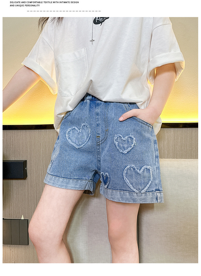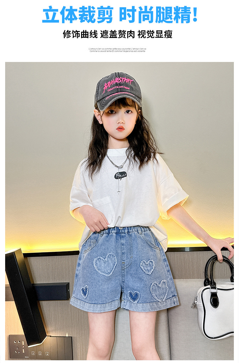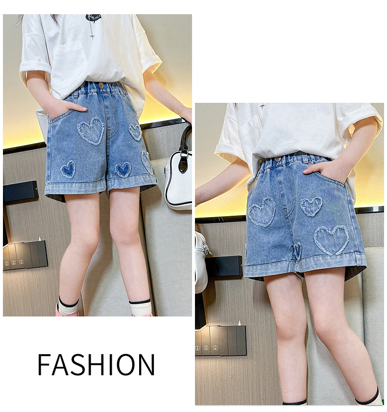 여자 사랑 데님 반바지 여름 2023 새로운 어린이 바지 유행 튀김 거리 소녀 큰 어린이 얇은 뜨거운 바지스토어 가기