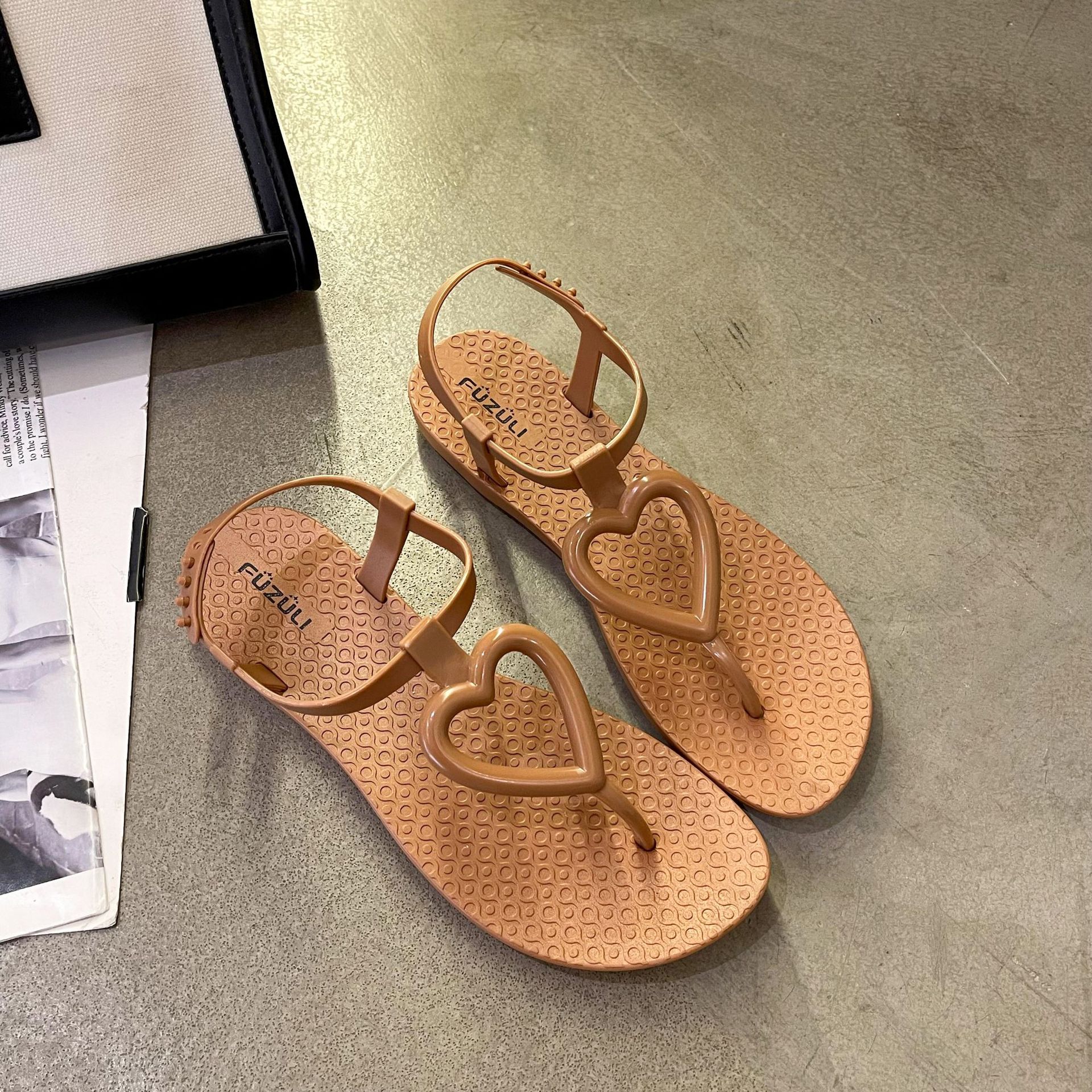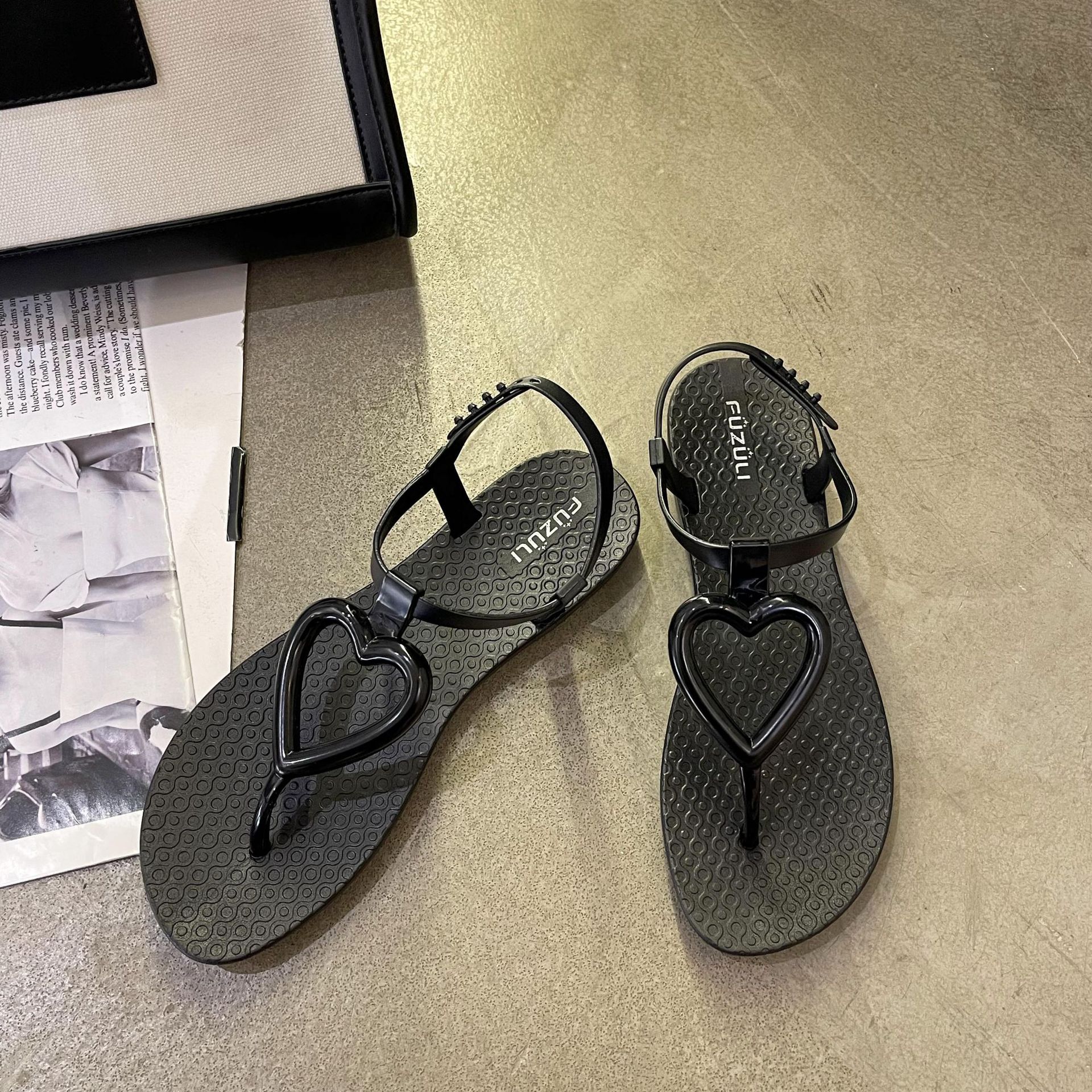 여름 패션 숙녀 플랫 샌들 달콤한 사랑 모양 캐주얼 요정 스타일 헤링본 샌들 클립 발가락 비치 신발스토어 가기