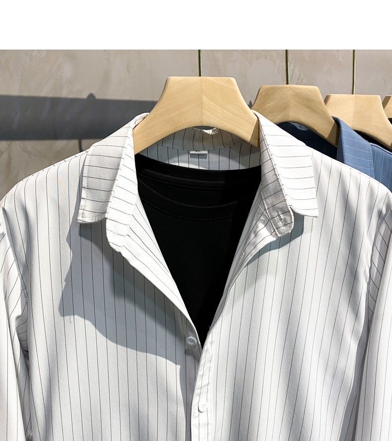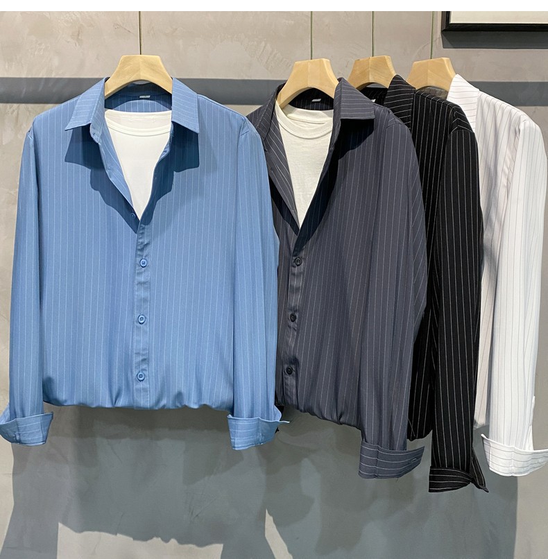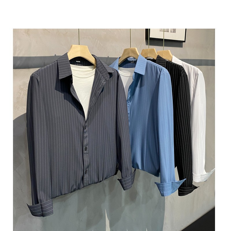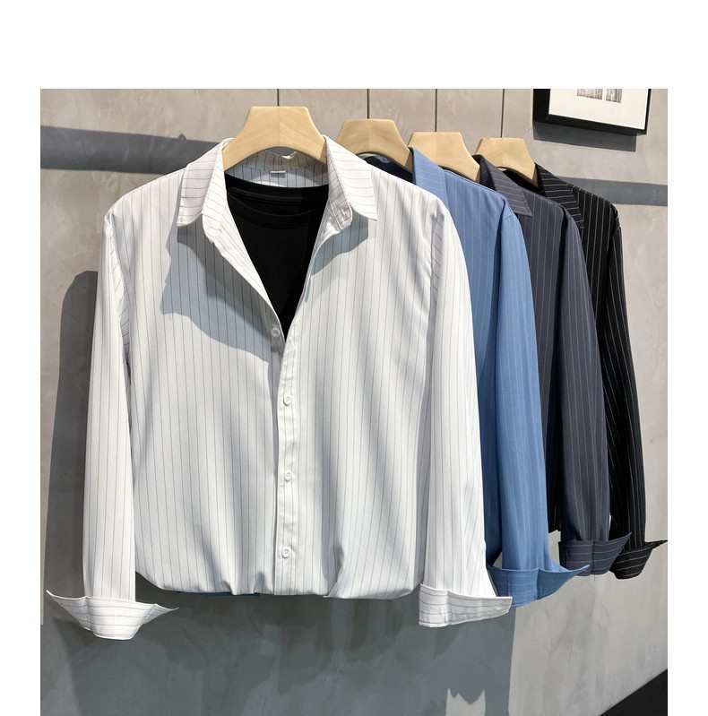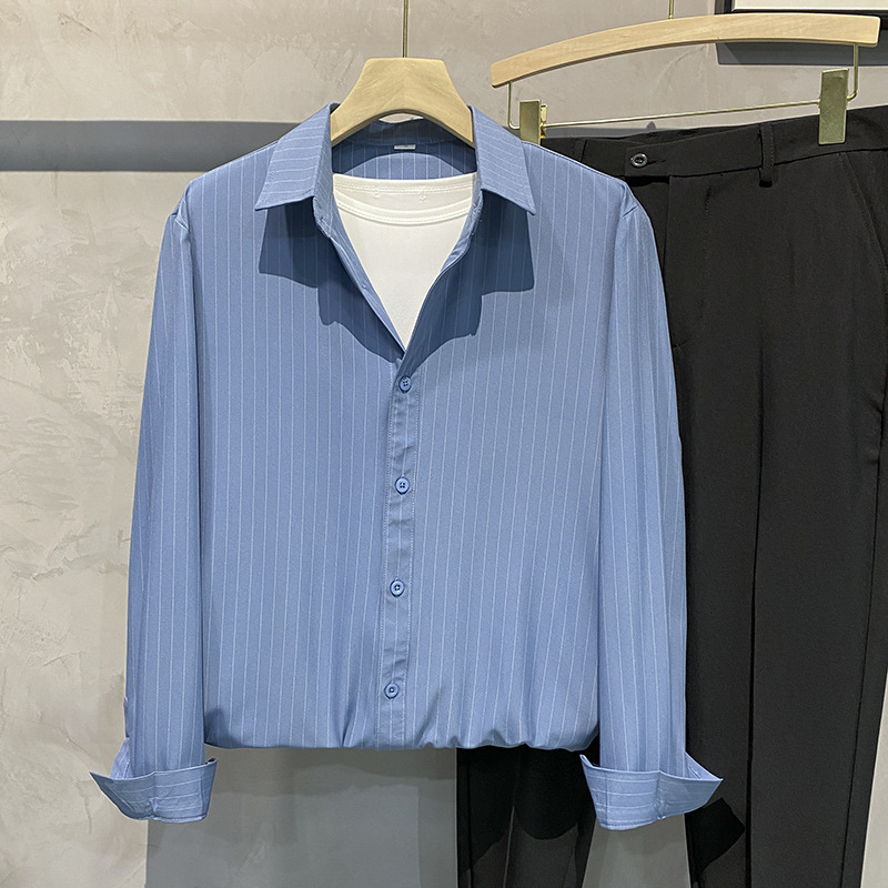 스트라이프 셔츠 남성용 고급 긴팔 봄과 여름 한국식 패셔너블한 가벼운 성숙한 스타일 캐주얼 드레이프 비 아이언 셔츠스토어 가기