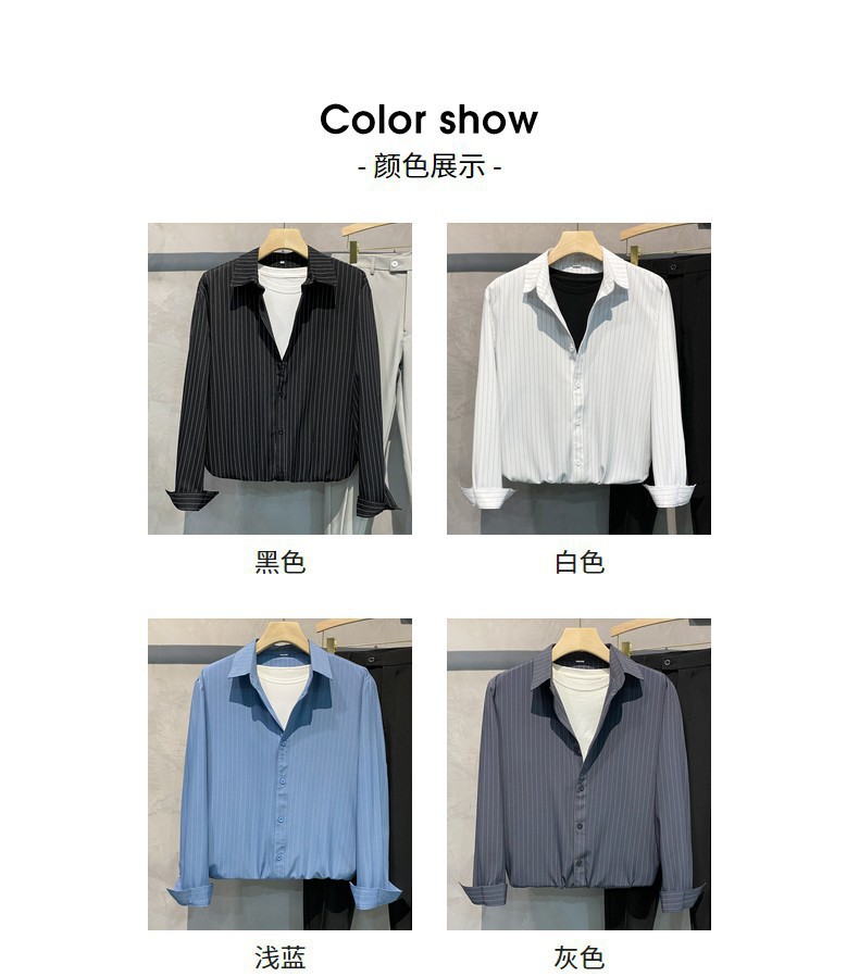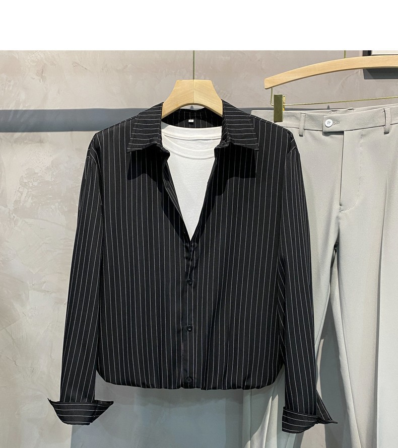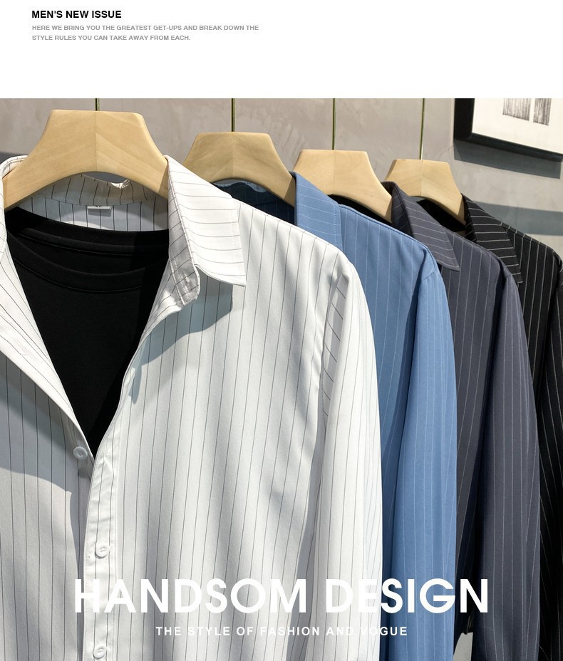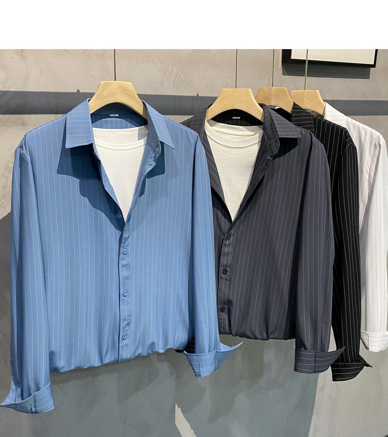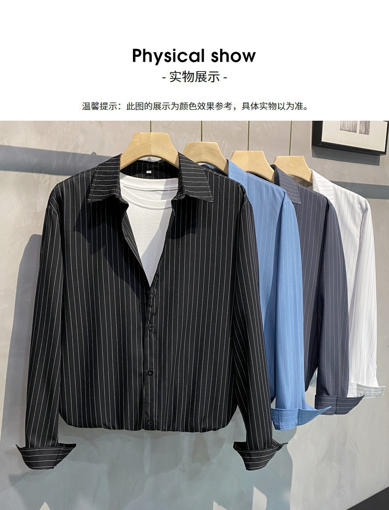 스트라이프 셔츠 남성용 고급 긴팔 봄과 여름 한국식 패셔너블한 가벼운 성숙한 스타일 캐주얼 드레이프 비 아이언 셔츠스토어 가기
