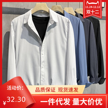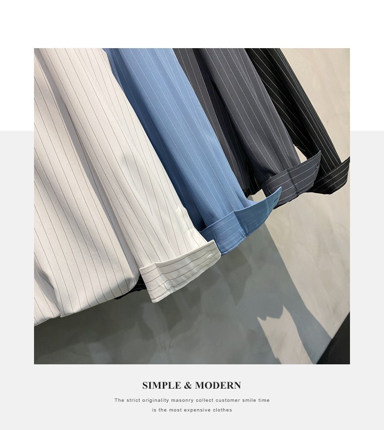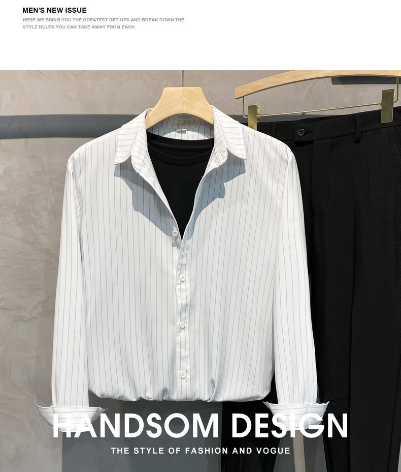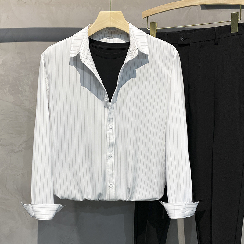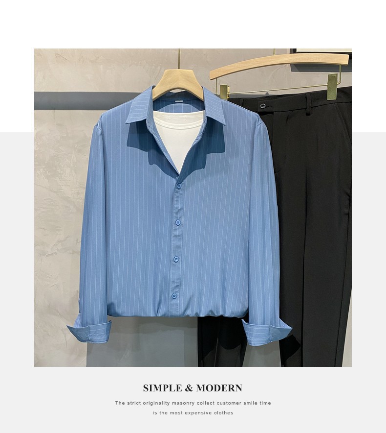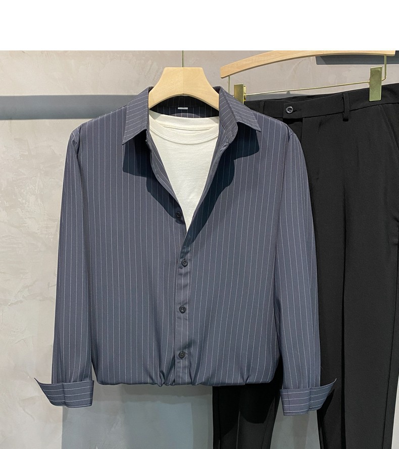 스트라이프 셔츠 남성용 고급 긴팔 봄과 여름 한국식 패셔너블한 가벼운 성숙한 스타일 캐주얼 드레이프 비 아이언 셔츠