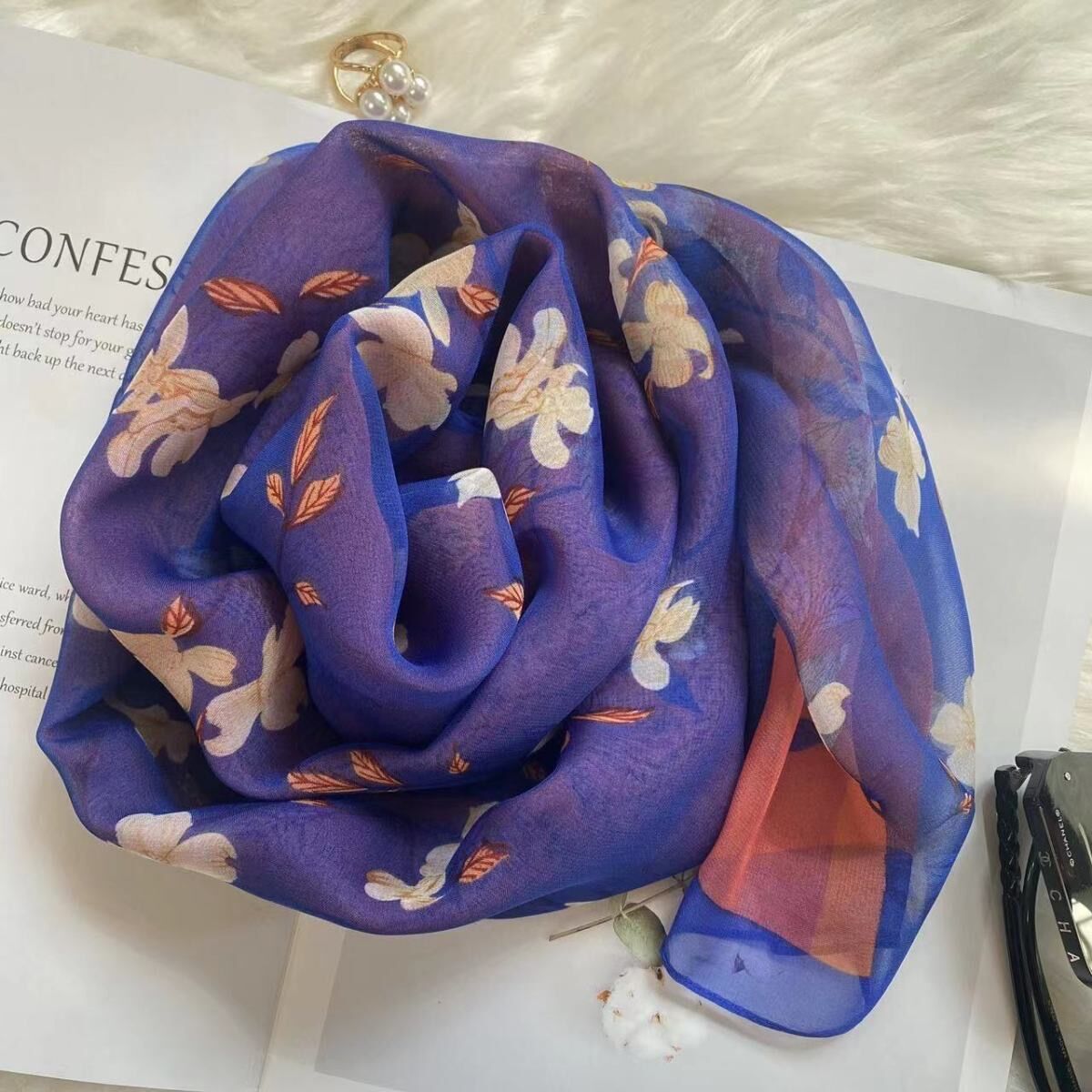 여름 얇은 실크 스카프 여성용 고급 뽕나무 실크 스카프 롱 모든 매치 패션 숄 스카프 비치 타올스토어 가기