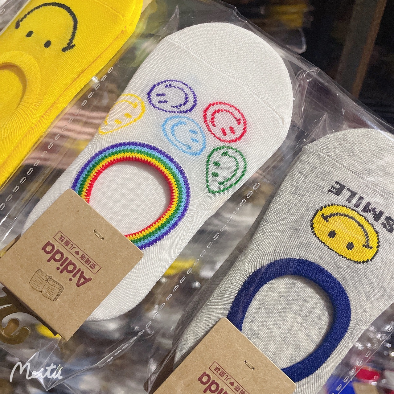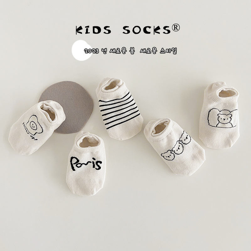 봄과 여름의 새로운 실리콘 5 켤레가 보트와 함께 떨어지지 않습니다 양말 스마일 짧은 양말 한국 소년 딸 어린이 양말면 빗질.스토어 가기
