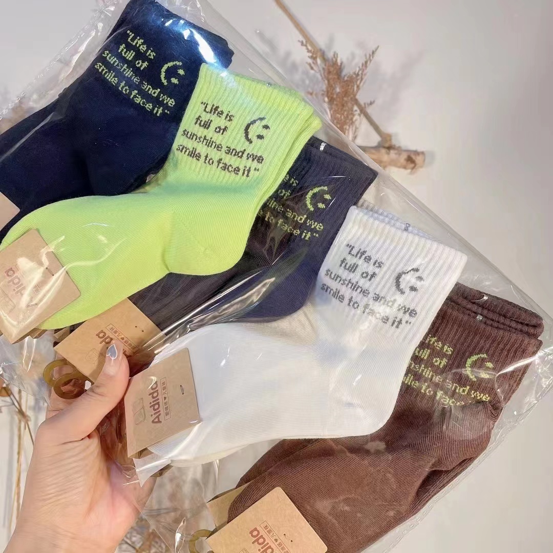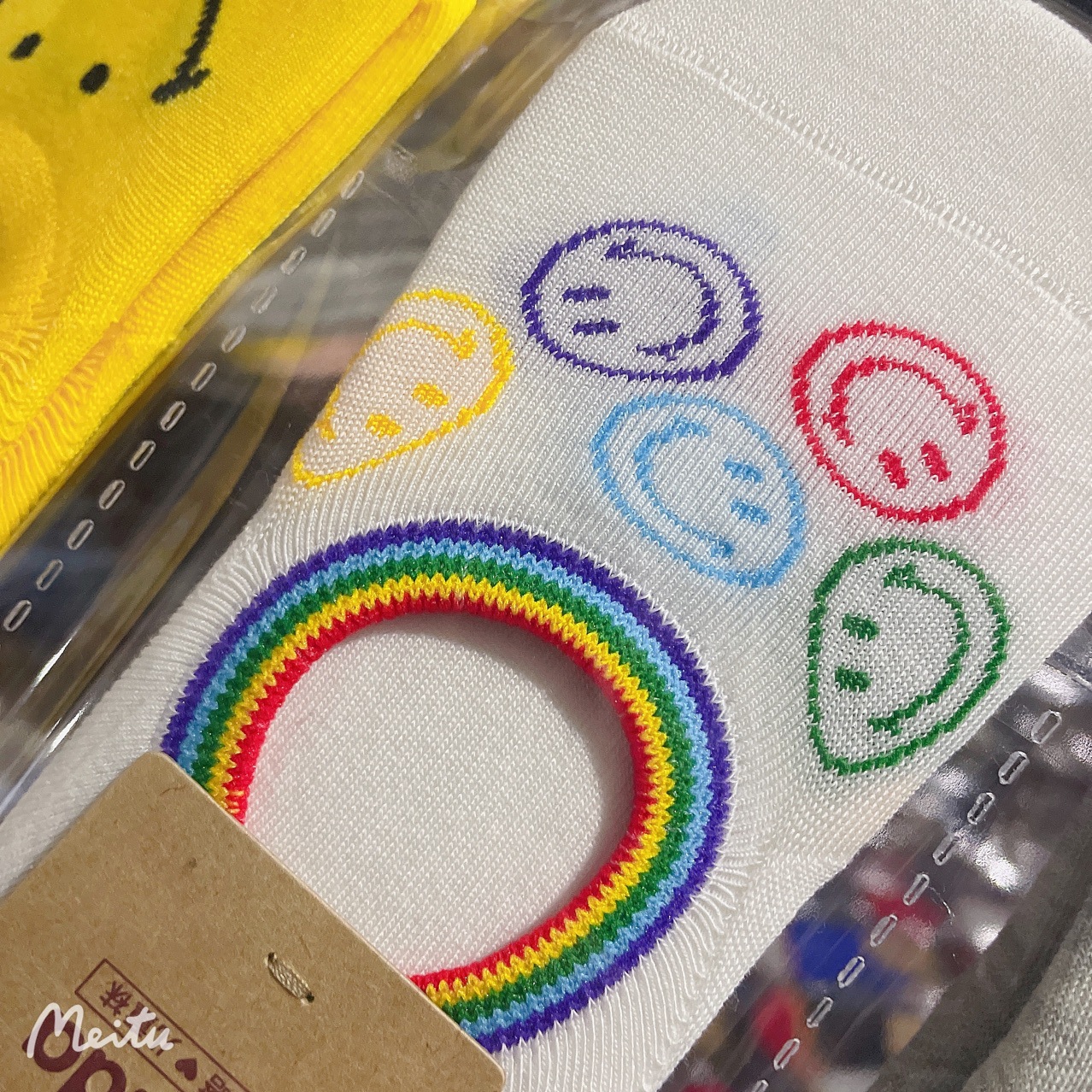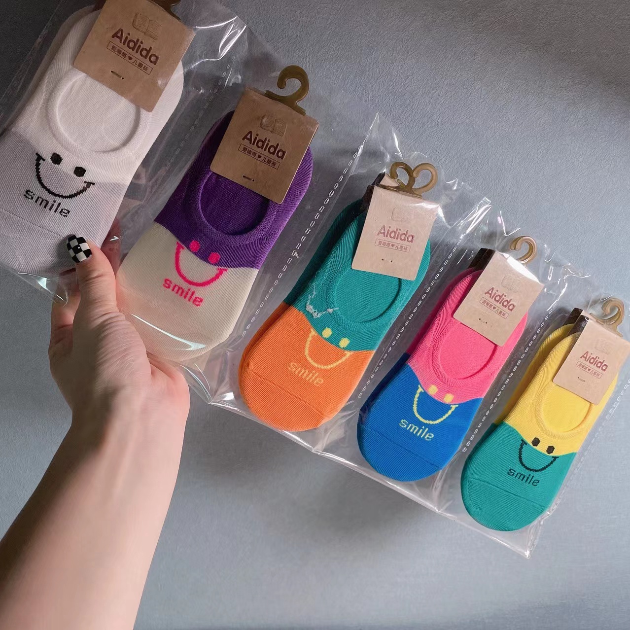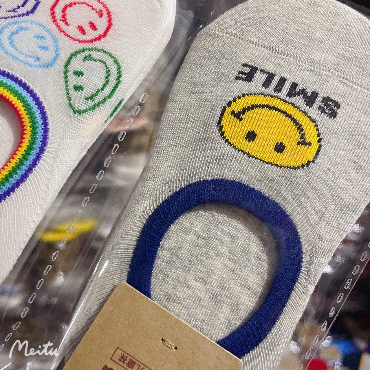 • 컬러 블록 스마일 페이스 5 쌍 보트 양말
