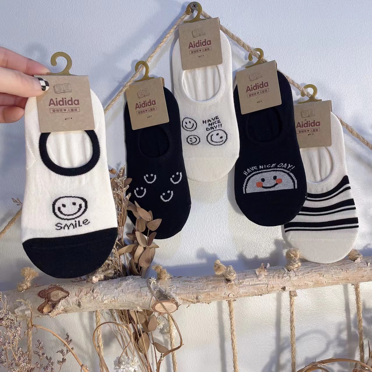 • 흑백 스마일 얼굴 5 쌍 보트 양말