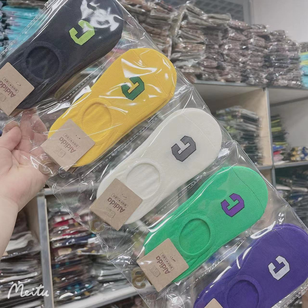 • 1396 녹색 문자 보이지 않는 양말 5 쌍