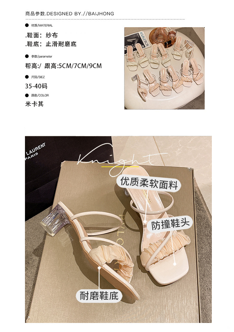 2022 새로운 여름 투명 샌들 여성용 하이힐 두꺼운 굽 크리스탈 하이힐 신발 페어리 스타일 샌들과 슬리퍼