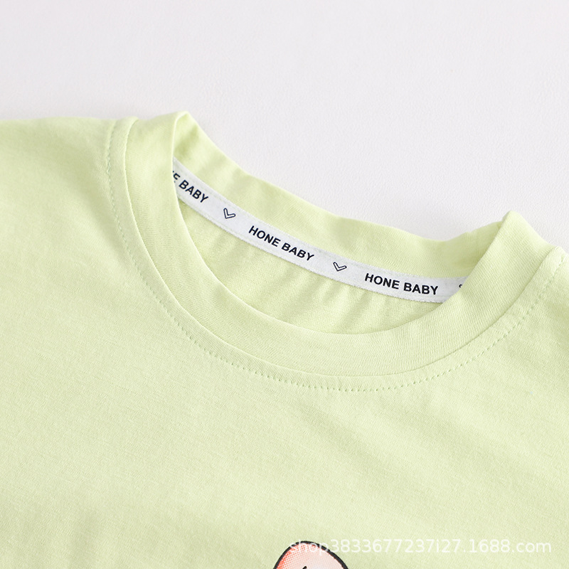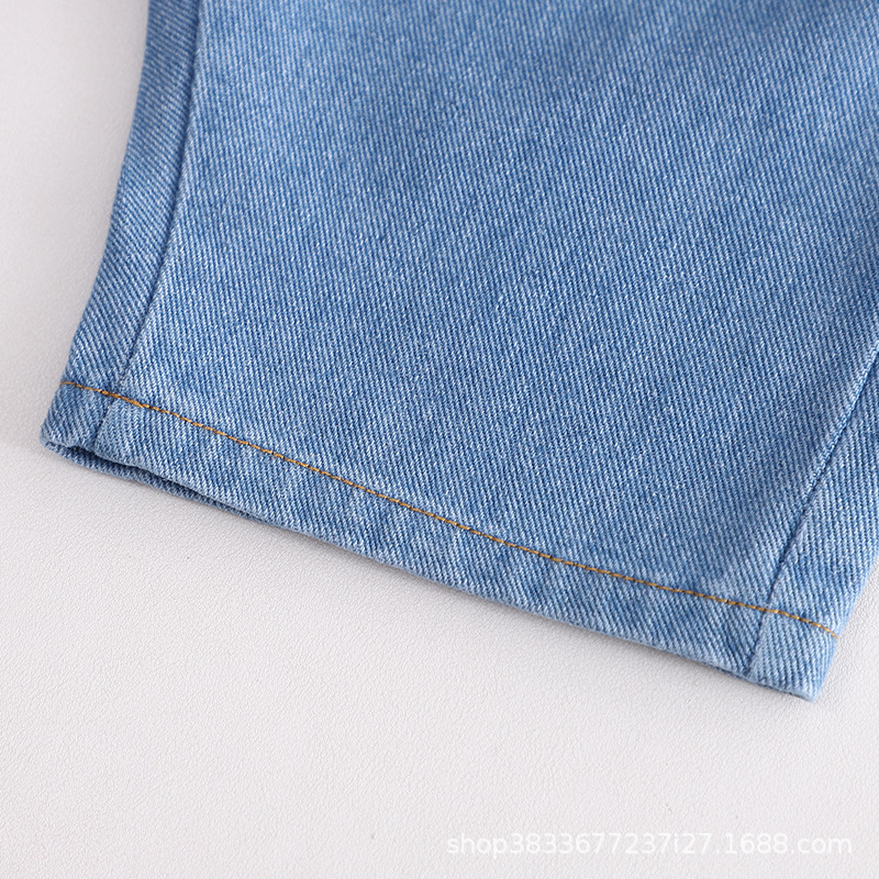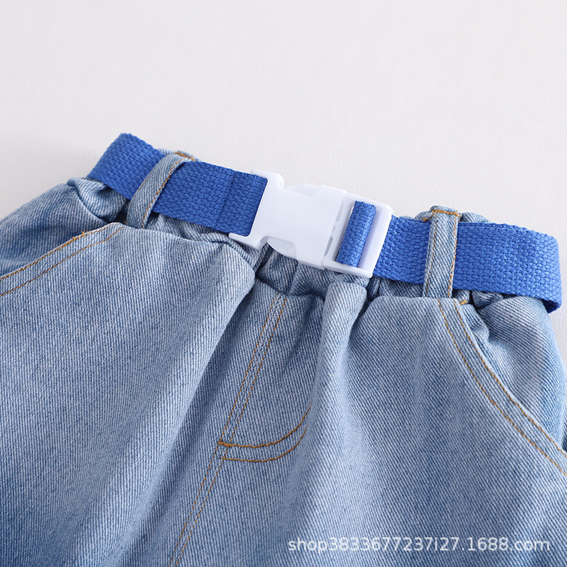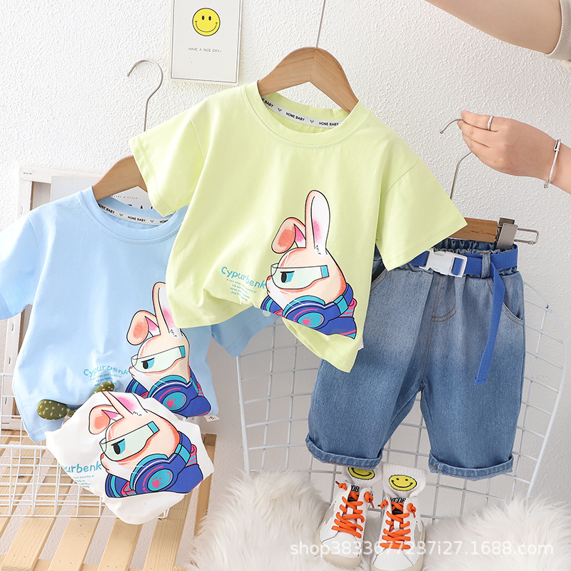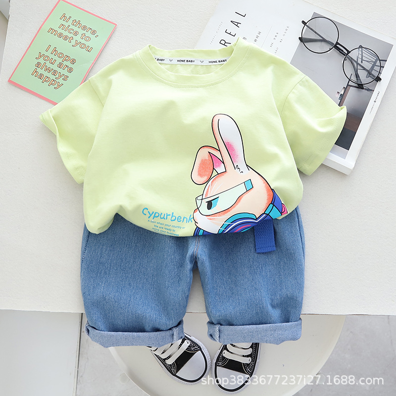 여름 외국 스타일 옷 아기 소녀 여름 반팔 데님 자른 바지 세트 어린이 남성 의류 머리카락의 세대
