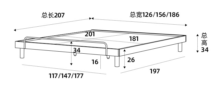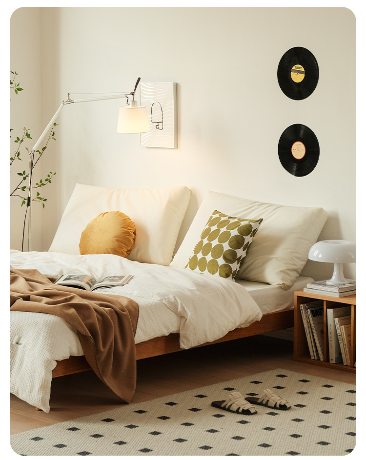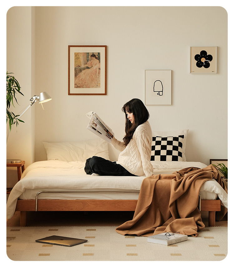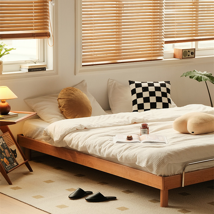 작은 아파트 다다미 침대 일본 단단한 나무 더블 침대 체리 가구 1.5 m 침대 프레임 침대 없음
