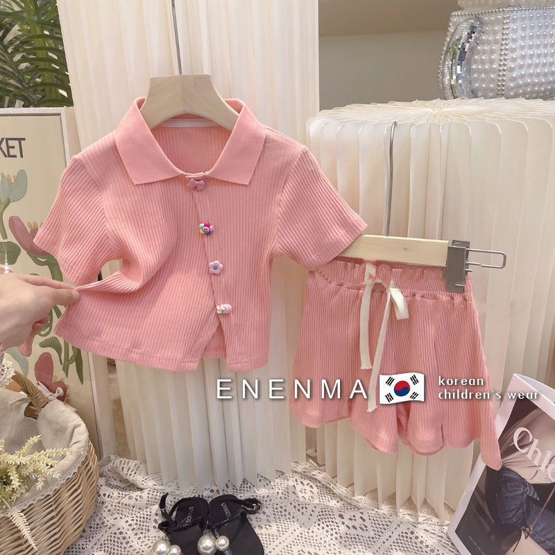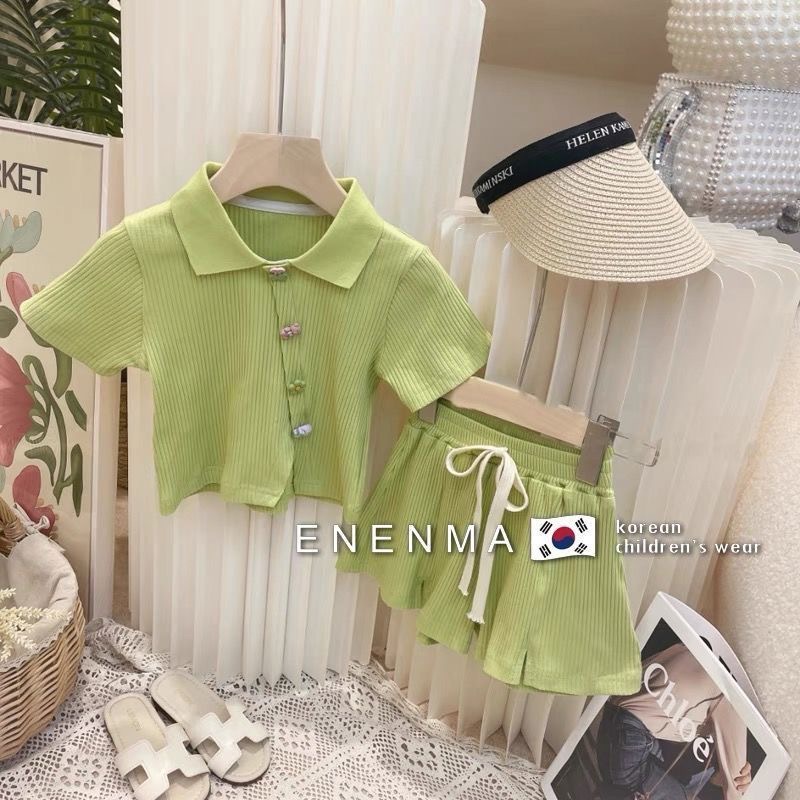 여아 2023 여름 신상품 세트 여아 한국 스타일 유행 폴로 셔츠 탑 캐주얼 반바지 투피스 유행