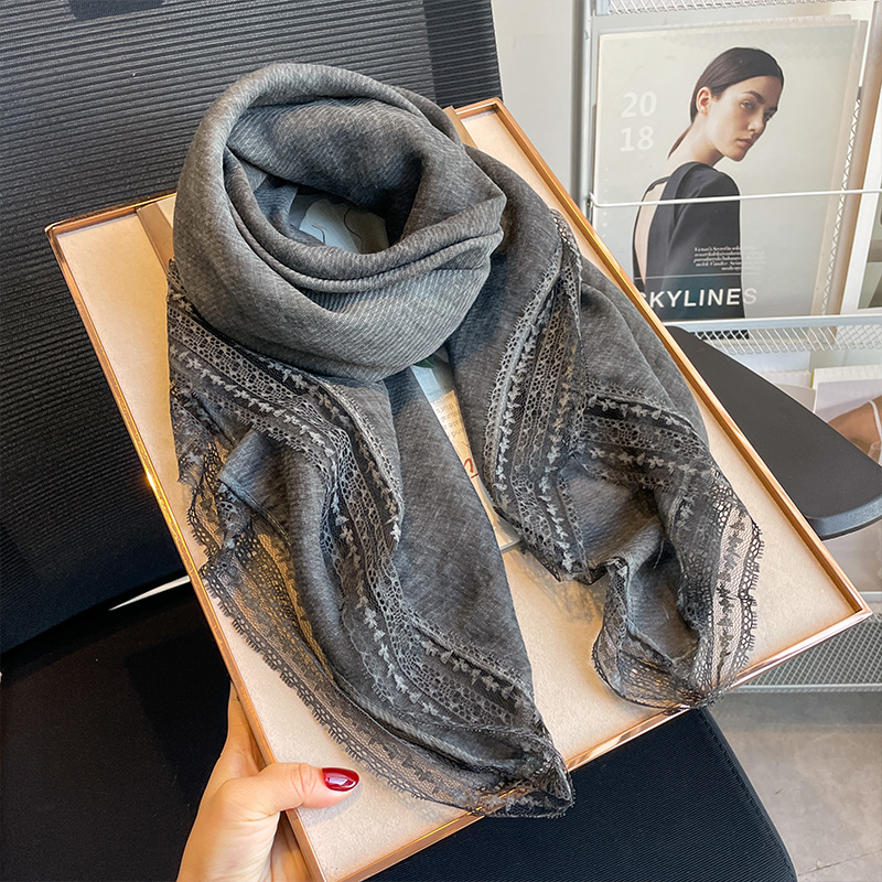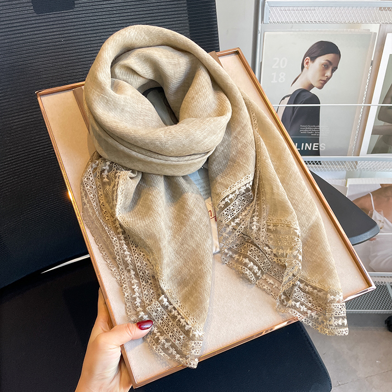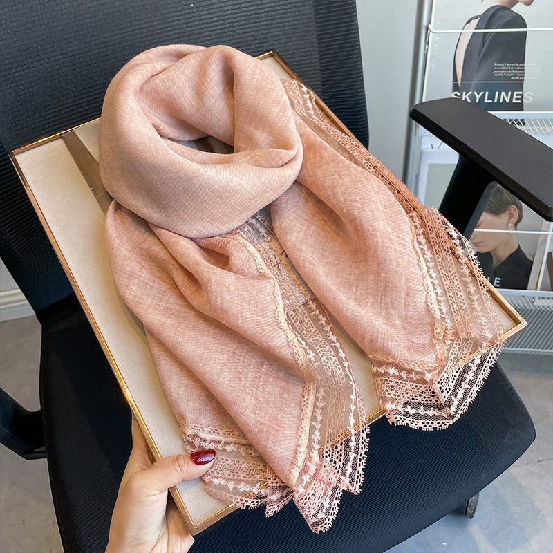 린넨 레이스 코튼 린넨 얇은 스카프 여성용 여름 바깥 숄 봄과 가을 패션 고급 실크 스카프스토어 가기